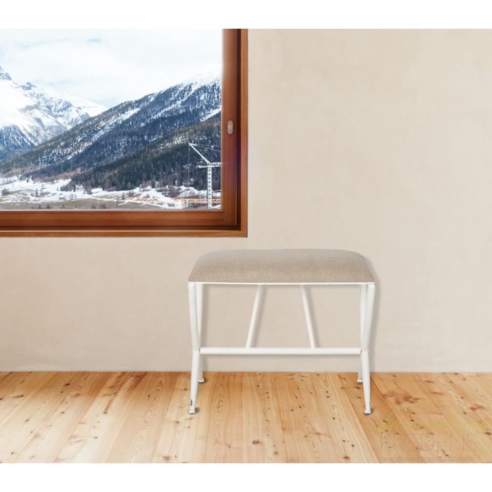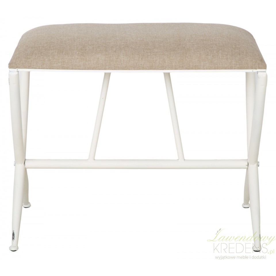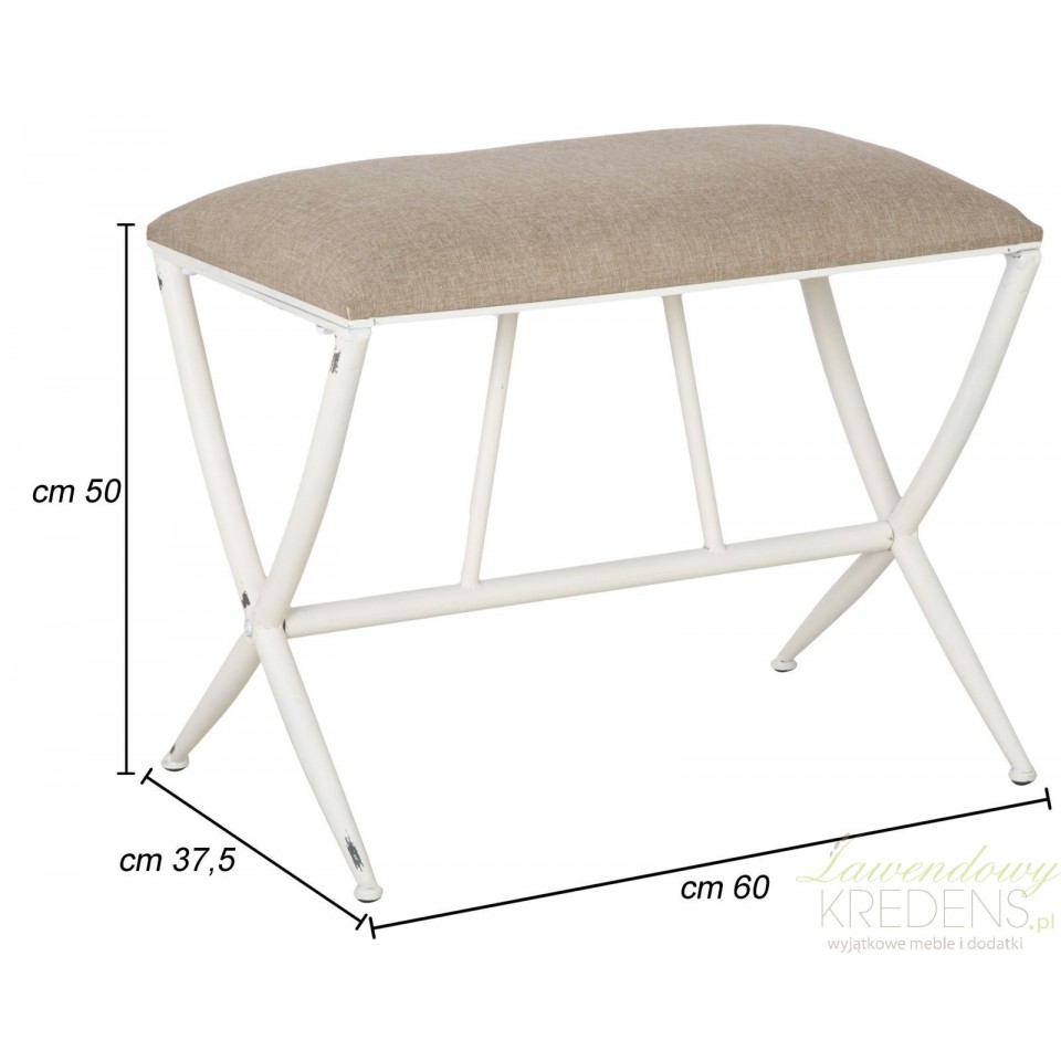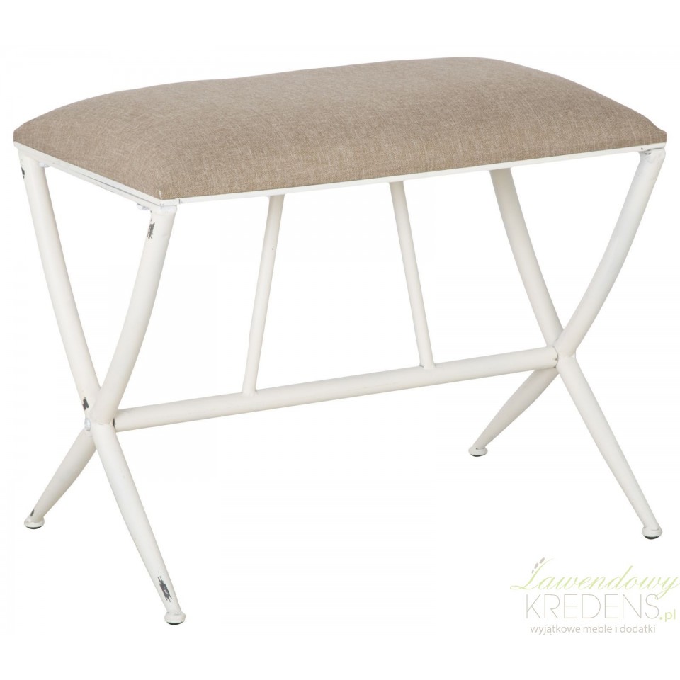 Pozwól sobie na królewski odpoczynek! Metalowa ławka z kolekcji Sarajevo ma prosty kształt oraz miękkie siedzisko, tapicerowane lnianą tkaniną w kolorze beżowym. Podstawę ławki tworzą skrzyżowane ze sobą smukłe nogi metalowe pomalowane na biało i postarzone. Ten kształt, solidne wykonanie i szlachetne połączenie kolorystyczne – z tym właśnie kojarzy się wystrój klimatycznych wnętrz.
