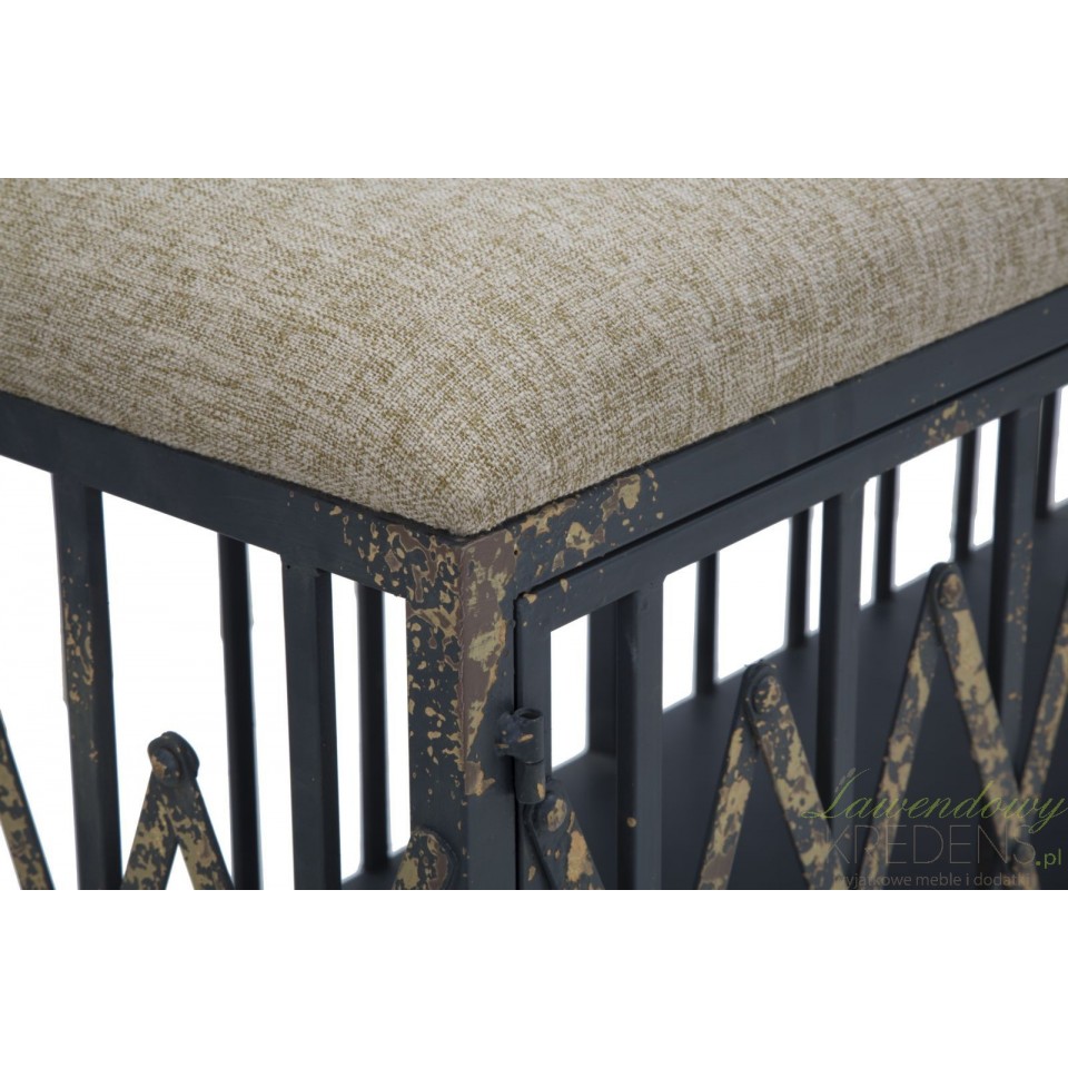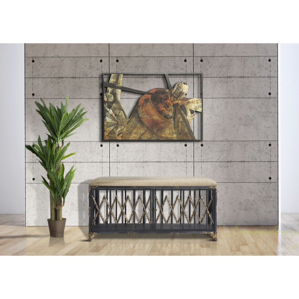 Ławka w stylu industrialnym do przedpokoju lub pokoju dziennego posiada miękkie siedzisko. To jeden z najlepszych projektów cenionej marki Mauro Ferretti, który doskonale sprawdzi się również jako dekoracja wnętrza, dzięki dodatkowym elementom dekoracyjnym takim jak metalowe okucie i antyczne postarzenia. Ławka industrialna ma szerokość ponad jeden metr i jest wąska, dzięki czemu możesz ją ustawić nawet w niewielkim korytarzu. Postarzana ławka z metalową konstrukcją geometryczną robi wrażenie!