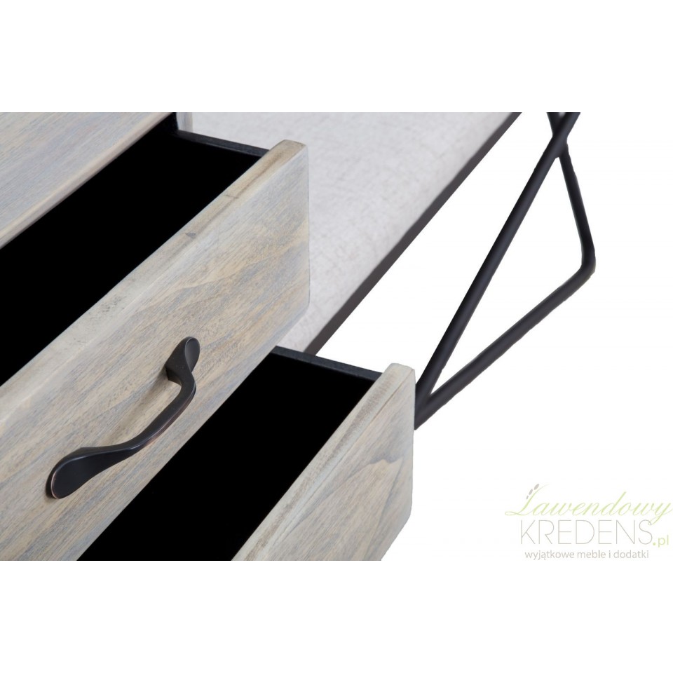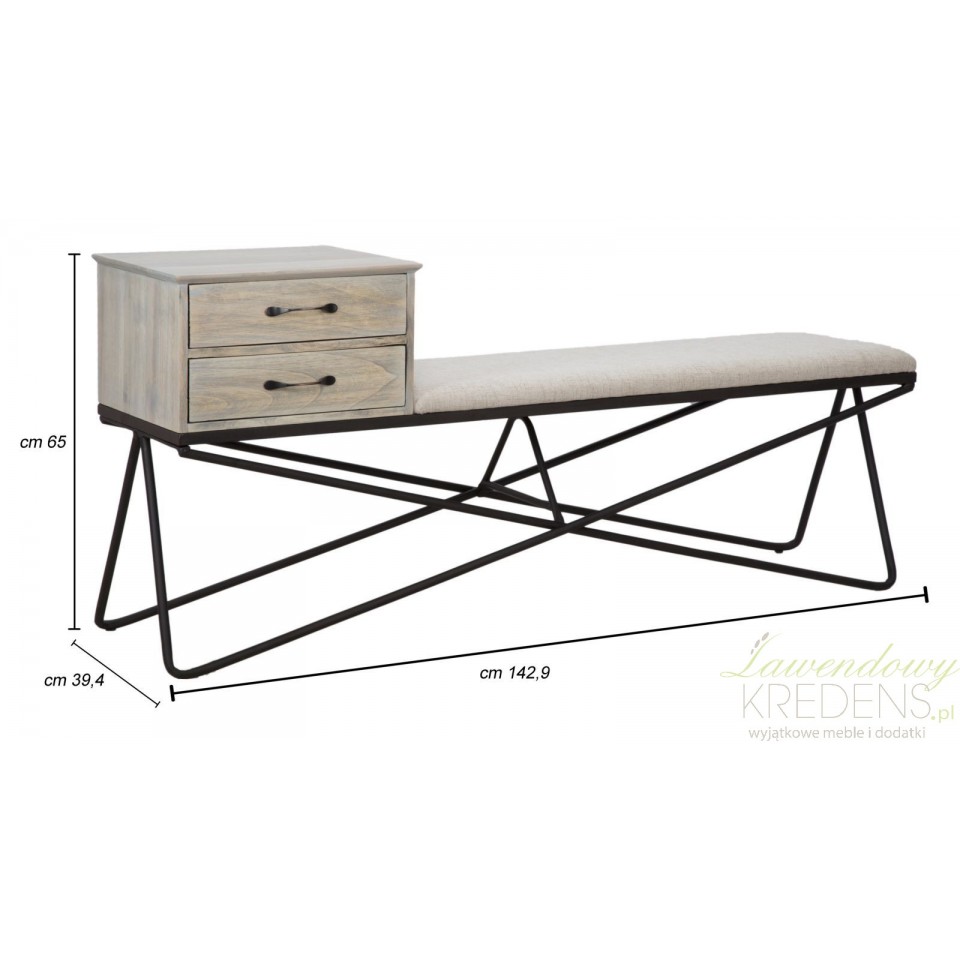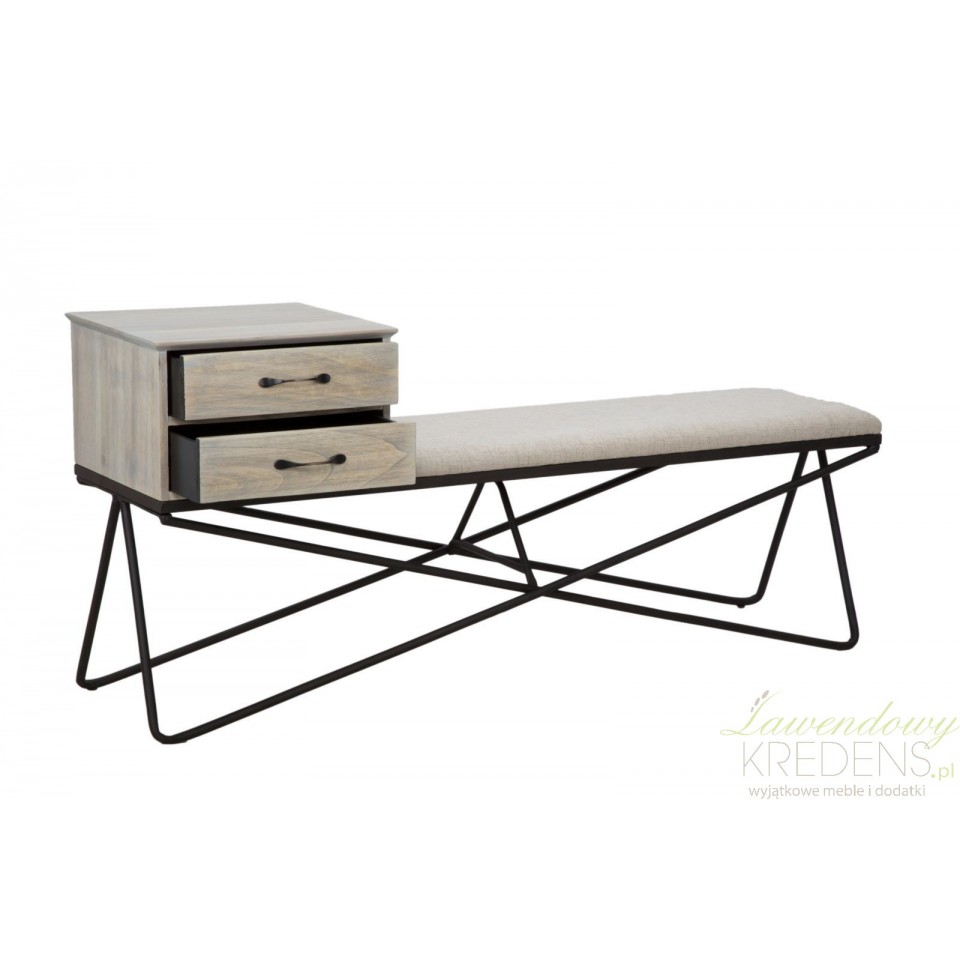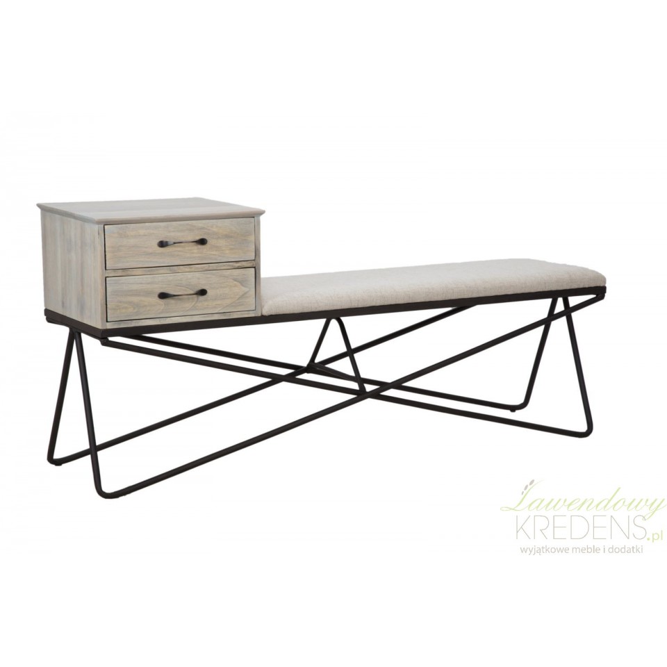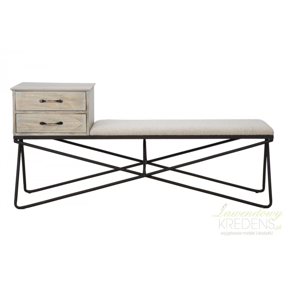 Ławka loft na metalowych, czarnych nogach posiadająca miękkie siedzisko i pojemne szufladki wykonane z drewna brzozowego.