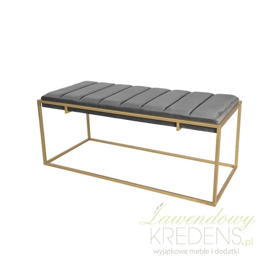Delikatna, aksamitna ława na złotych nogach szara wygląda na naprawdę stylowy mebel - jakby została zaprojektowana dla eleganckiego gospodarstwa domowego. Nogi są smukłe, proste i stanowią niezwykle stabilną ramę dla siedziska. Wygodnie tapicerowane siedzisko jest pikowane. Aksamitne ławy o nostalgicznym wyglądzie, to meble, które można wykorzystać na wiele sposobów - czy to w przedpokoju, jako siedzisko przy oknie, przy stole lub w nogach łóżka. To także doskonały wybór do niewielkich przestrzeni. Projekt inspirowany współczesnymi aranżacjami, który uszlachetnia każdą atmosferę.