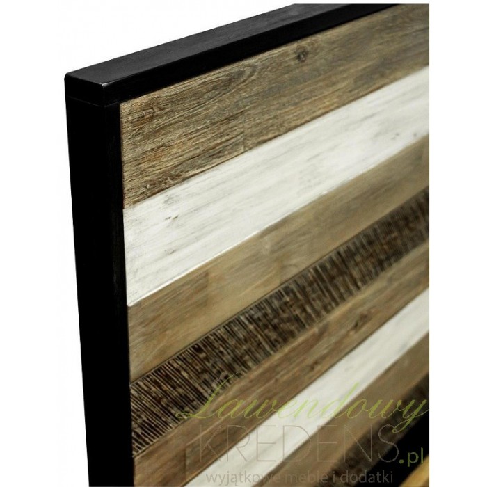 Piękne łóżko Adesso w stylu retro o długości 219cm to stylowe połączenie czarnego korpusu i czarnych, metalowych nóg. Elementem charakterystycznym tego modelu jest stylowo zaprojektowany zagłówek zbudowany z poziomych desek w kolorach białym i odcieniach brązu. Łóżko to najważniejszy element wyposażenia sypialni, miejsce w którym relaksujemy się i odpoczywamy. Funkcjonalność i designerskie atrybuty łóżka tworzą w połączeniu ze sobą mebel wyjątkowy i pełen klasy - idealny do Twojego wnętrza.