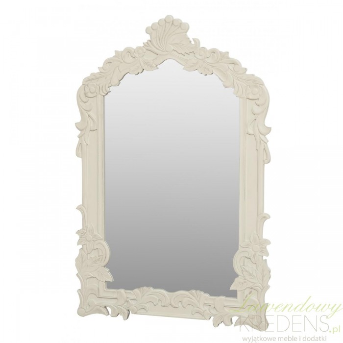 Lustro prowansalskie firmy Livin Hill ma kolor waniliowy, dzięki czemu wspaniale pasuje do każdego wnętrza. Świetnie będzie wyglądać jako dodatek do sypialni na przykład nad toaletką. Ma śliczną, bogato zdobioną ramę z motywem kwiatów i liści. Lustra w stylu prowansalskim to wspaniałe dekoracje do wnętrz.