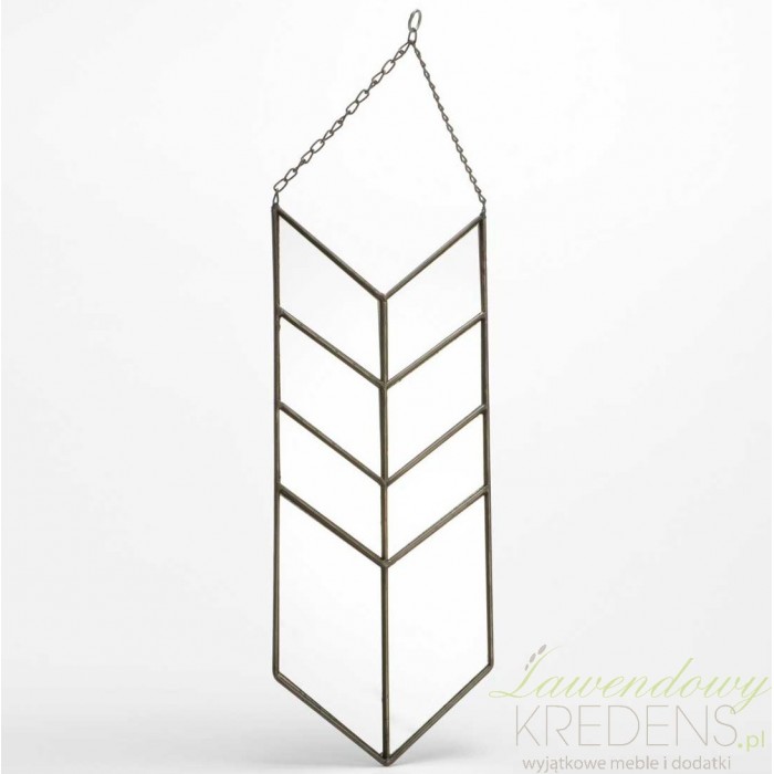 Ozdobne lustro w stylu skandynawskim charakteryzuje się nietypowym wykonaniem ramy, która przypomina kształtem strukturę liścia. Ciemna kolorystycznie metalowa rama dzieli taflę lustra na osiem mniejszych części. Lustro w stylu industrialnym jest przeznaczone do zawieszenia na ścianie, co możesz uczynić za pomocą łańcuszka. Nie zwlekaj i zamów lustro juz teraz aby stało się jednym z Twoich ulubionych dodatków dekoracyjnych. Satysfakcja gwarantowana!