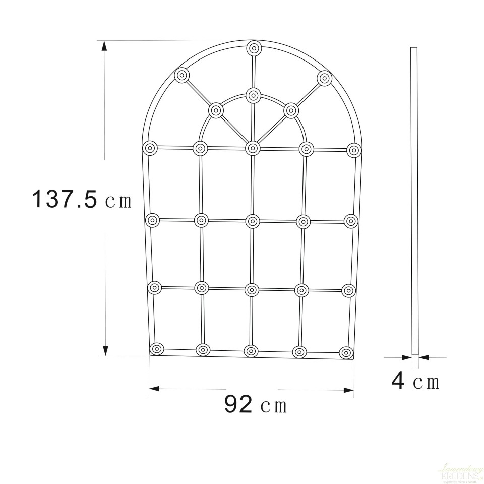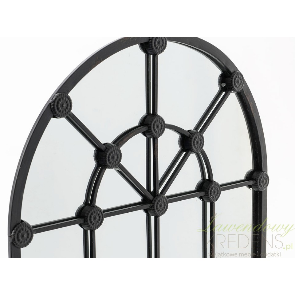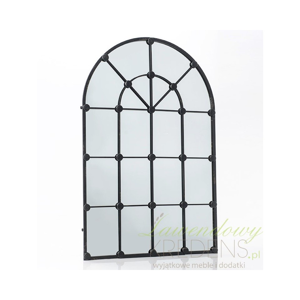 Lustro w stylu industrialnym ma kształt dużej okiennicy. Lustro okno przedzielono na mniejsze części szprosami, które na łączeniach mają charakterystyczne kółka. Lustro możesz zawiesić na ścianie lub swobodnie o nią oprzeć.Polecamy lustra okna do wnętrz industrialnych i loftowych.