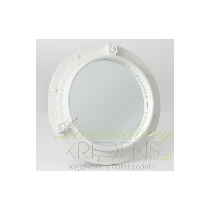 Lustro industrialne to wyjątkowy model lustra przypominający okienko łódki podwodnej. Unikalna, metalowa rama pomalowana na biało z pewnością odnajdzie się w wielu aranżacjach. Ramę zdobią również pomalowane na biało - śruby i trzy pokrętła. Wybieraj oryginalne lustra w stylu industrialnym aby urządzić wnętrze, które zaskoczy samego Ciebie!
