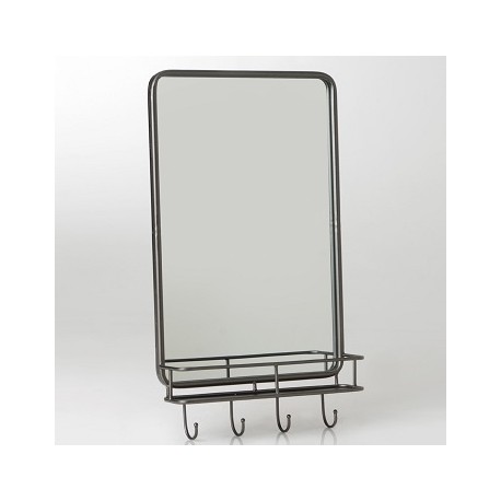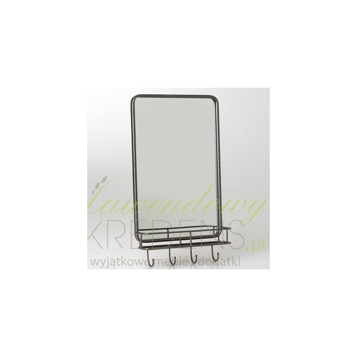 Lustro industrialne posiada wszystkie elementy jakie powinien mieć praktyczny dodatek do domu, takie jak półkę i wieszaki.
