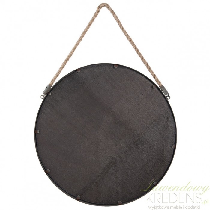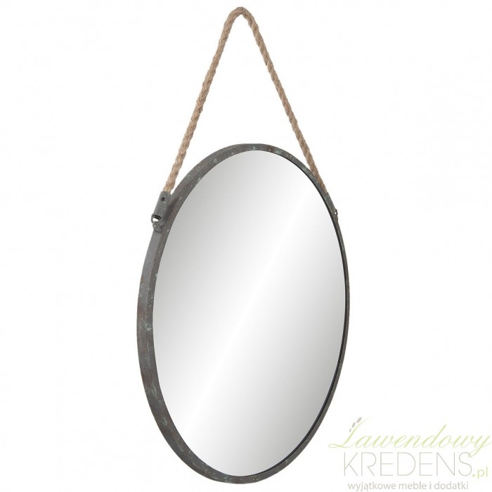 Okrągłe lustro stylizowane jest na stare. Świadczą o tym przetarcia na wąskiej, szarej ramce. Rama została wykonana z metalu i zamocowano do niej sznur, dzięki któremu bezpiecznie zawiesisz lustro na ścianie. Doskonałe do każdego wnętrza, z powodzeniem zaaranżujesz dzięki niemu łazienkę jak i salon. Polecamy dodatki do domu od Clayre&Eef.