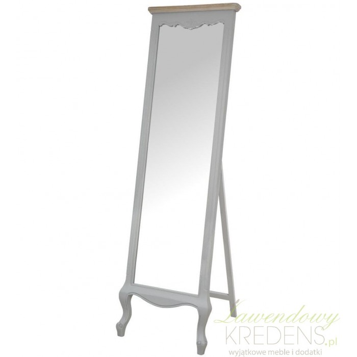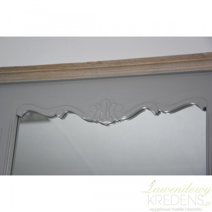 Wysokie lustro prowansalskie z kolekcji Catania ma jasnoszary kolor i urocze rzeźbienia.