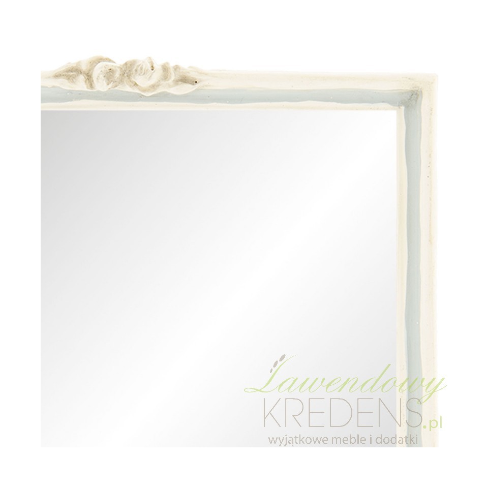 Oryginalne, prostokątne i dekoracyjne lustro w stylu prowansalskim z efektownie prezentującą się beżowo-szarą ramą. Rama lustra malowana ręcznie ma wyraźnie zaznaczone dwie linie w jasnych kolorach i urokliwe, skromne rzeźbienie na górnej krawędzi. Lustro prowansalskie Clayre&Eef to dodatek, który rozświetli i ożywi wnętrze. Brak pomysłu na ciekawą ozdobę ściany w salonie lub w przedpokoju? Szukaj inspiracji w naszym sklepie i na blogu!
