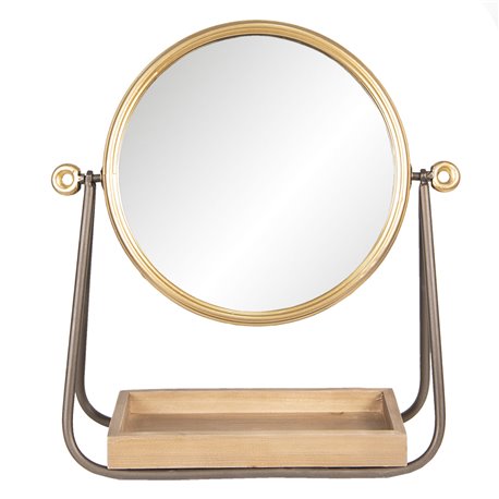 Nasze wyjątkowe lusterko w złotej ramie wyróżnia się z pośród innych i doskonale wpasowuje się we współczesną modę i trendy. Lusterko z drewnianą tacką jest funkcjonalne i nadaje nietuzinkowego charakteru w każdym wnętrzu. Perfekcyjne zarówno dla młodych jak i dla starszych kobiet które chcą zamienić banalne lustro na wyjątkowy przedmiot. Złote lusterko 2w1 w okrągłej ramie ma wiele zastosowań.