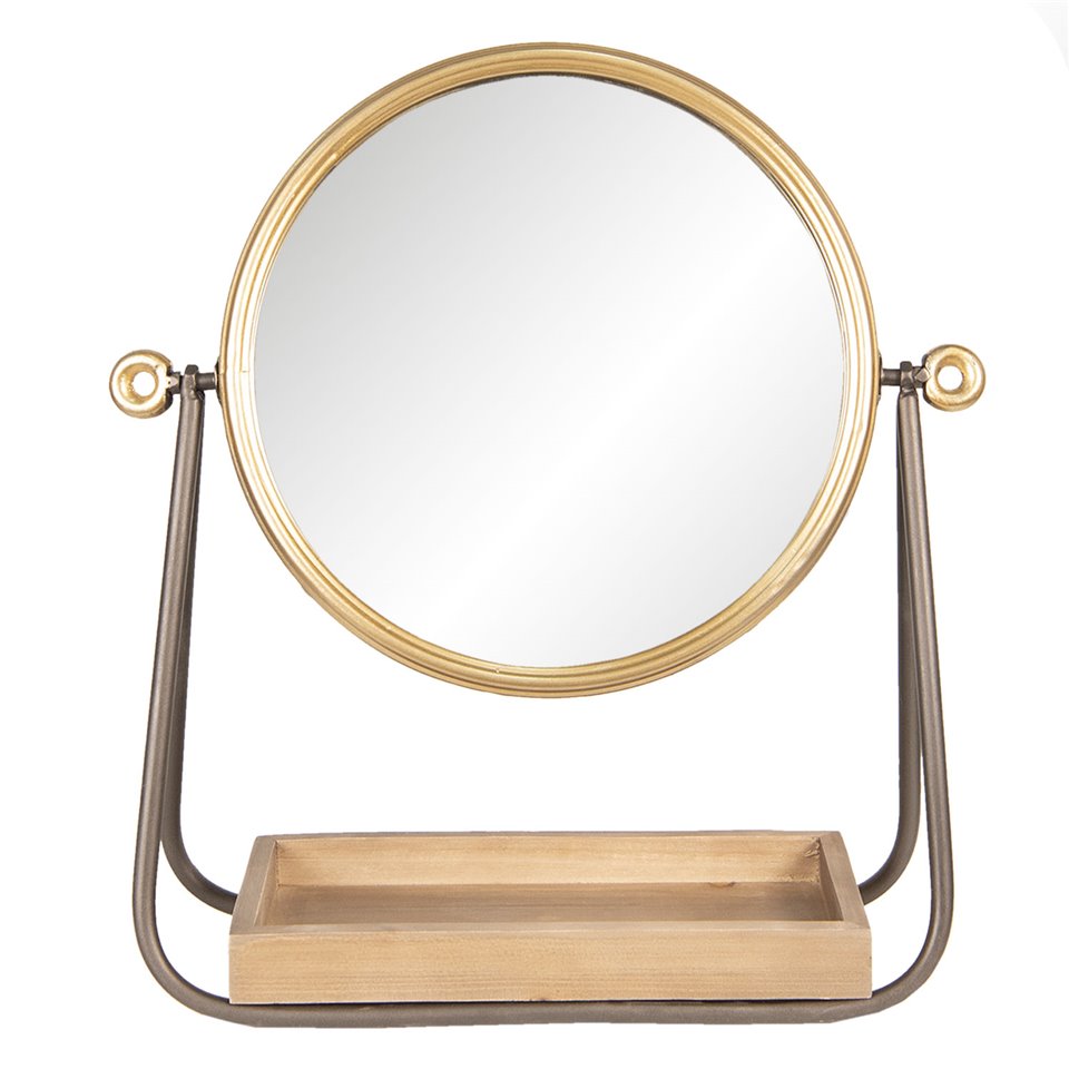 Złote lusterko z drewnianą tacą est genialnym lusterkiem do makijażu, a dzięki funkcji przechowywania pozwala lepiej skupić się nad codziennym makijażem!