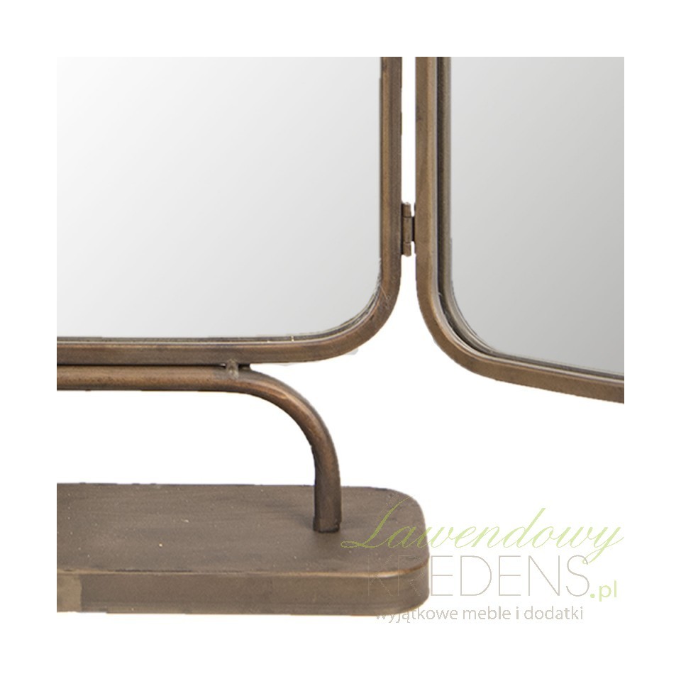 Lustro stojące Tryptyk Clayre & Eef składa się z trzech, oprawionych w metalową, wąską ramę luster. Ten model najlepiej podkreśli tradycyjną stylistykę rustykalnych i tradycyjnych wnętrz. Szczotkowane, postarzane wykończenie w brązowym kolorze sprawia, że to lustro wygląda jak ocalony skarb. Możesz ustawić je na komodzie lub na toaletce. Takie dodatki do domu w starym stylu możesz z powodzeniem zastosować w wielu aranżacjach inspirowanych stylem loftowym, retro oraz prowansalskim. Zamów już dzisiaj!