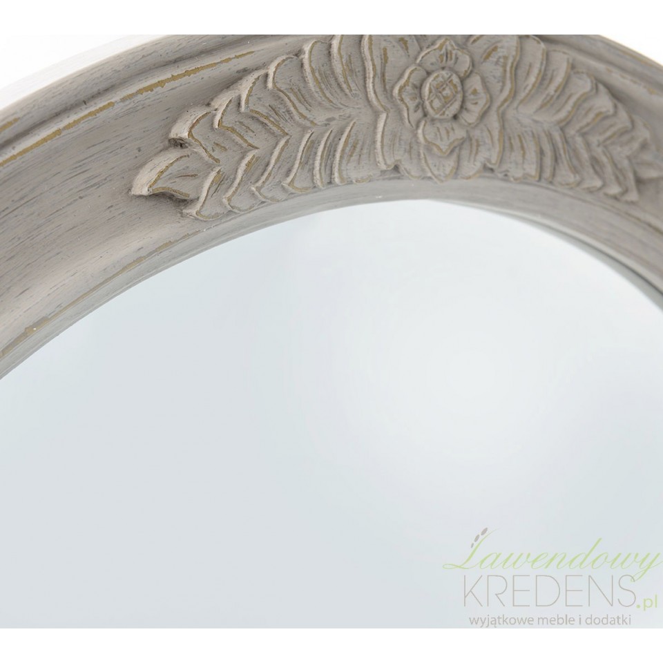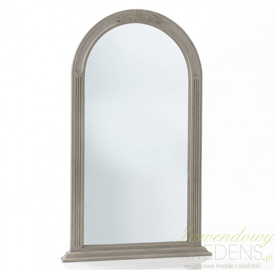 Ścienne lustro w stylu francuskim ma urzekająco wykończoną ramę w kolorze szarobeżowym. Efekt eleganckiego lustra wzmacniają delikatne rzeźbienia, które nie wprowadzają zbędnego przesytu, a jedynie odrobinę prowansalskiego szyku. Rama lustra zaokrąglona w górnej części ma wysokość 130 centymetrów. Bądź gotów na odważne wyrażenie swojego gustu i zamów lustra oraz meble w stylu francuskim!