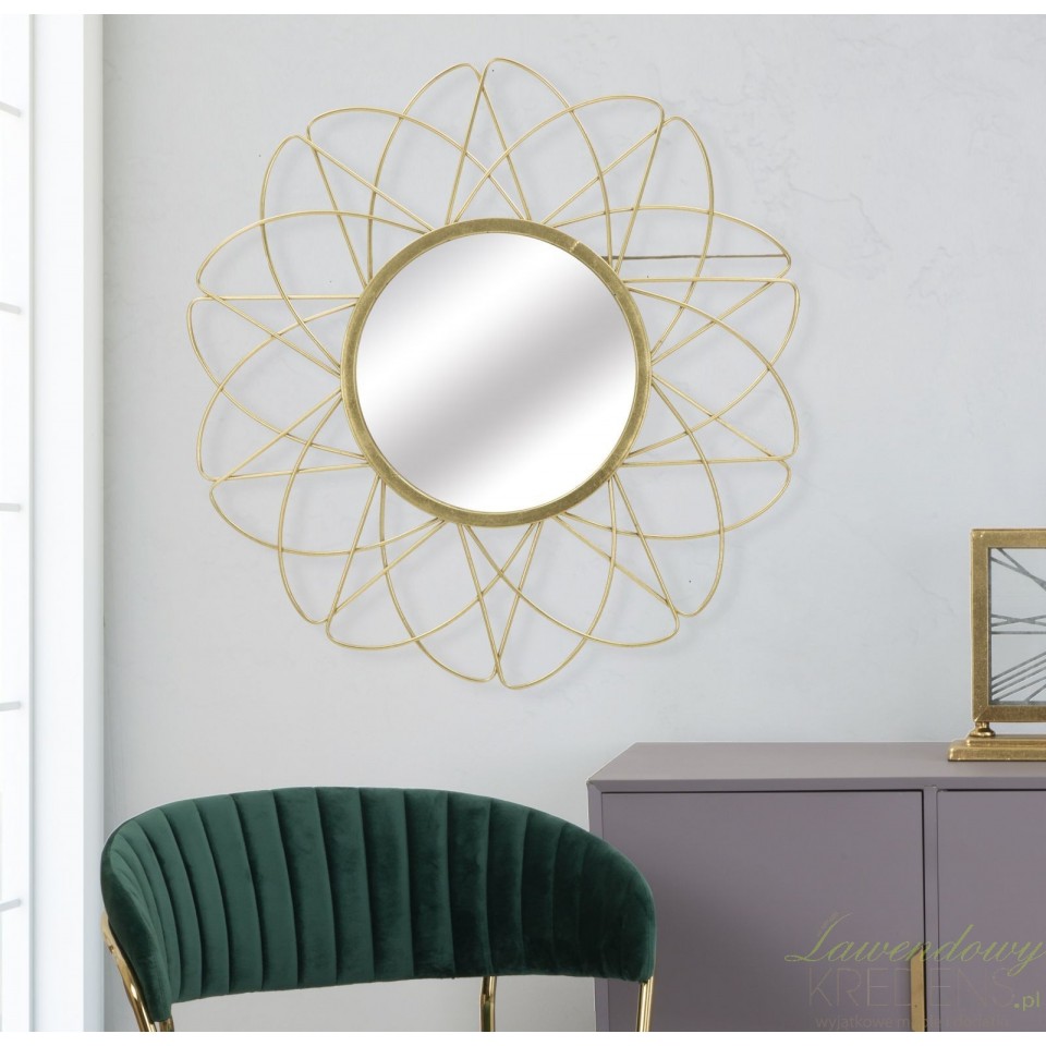 Złote lustra mogą pełnić funkcję zarówno delikatnych dodatków, jak i efektownych akcentów. Złoto to kolor, który świetnie łączy się tak naprawdę z wszystkimi barwami, od bieli po czernie, dlatego nie musisz się obawiać, że złote lustro Glam Isra będzie "gryzło się" z Twoją aranżacją. Ten model z ażurową ramą o geometrycznej formie będzie pięknie wyglądał na tle jednolitych ścian.