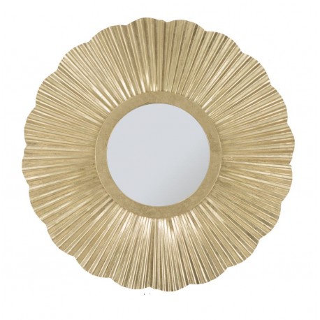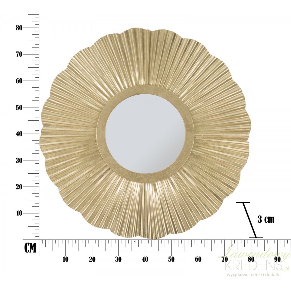 Okrągłe lustro ścienne w złotej ramie, która stanowi ponad 50 procent średnicy lustra. Kolekcja stylowych dodatków Glam doskonale łączy prostotę z elegancją. W tej kolekcji znajdziesz dodatki o geometrycznych formach, efektowne kolory, a w efekcie urządzisz przytulne wnętrze i zyskasz poczucie równowagi. Złote lustra z kolekcji Glam to proste i nienachalne wzornictwo, które warto zastosować w swoim domu.