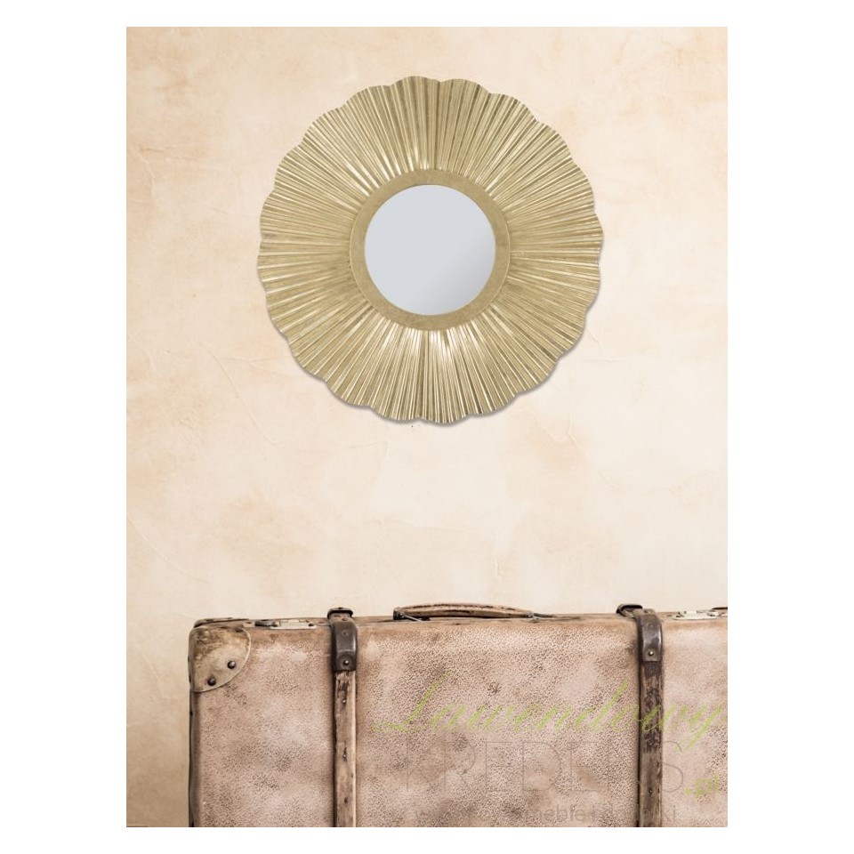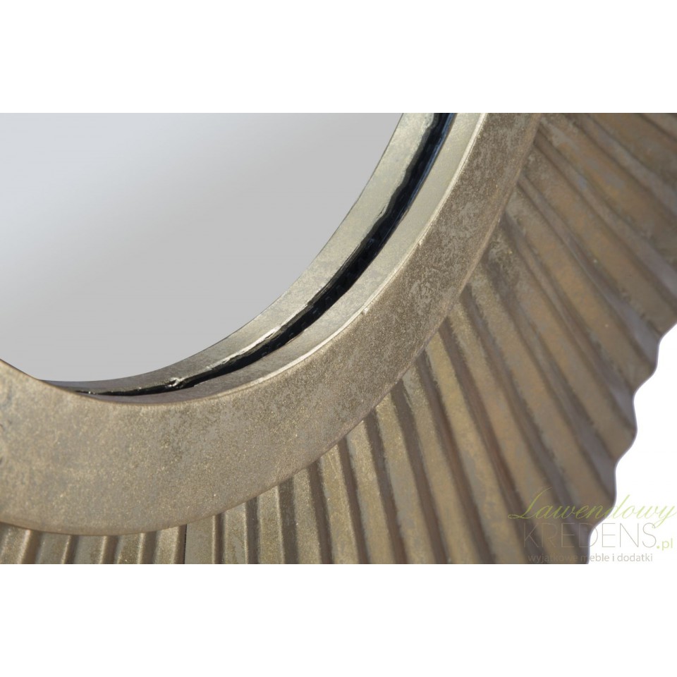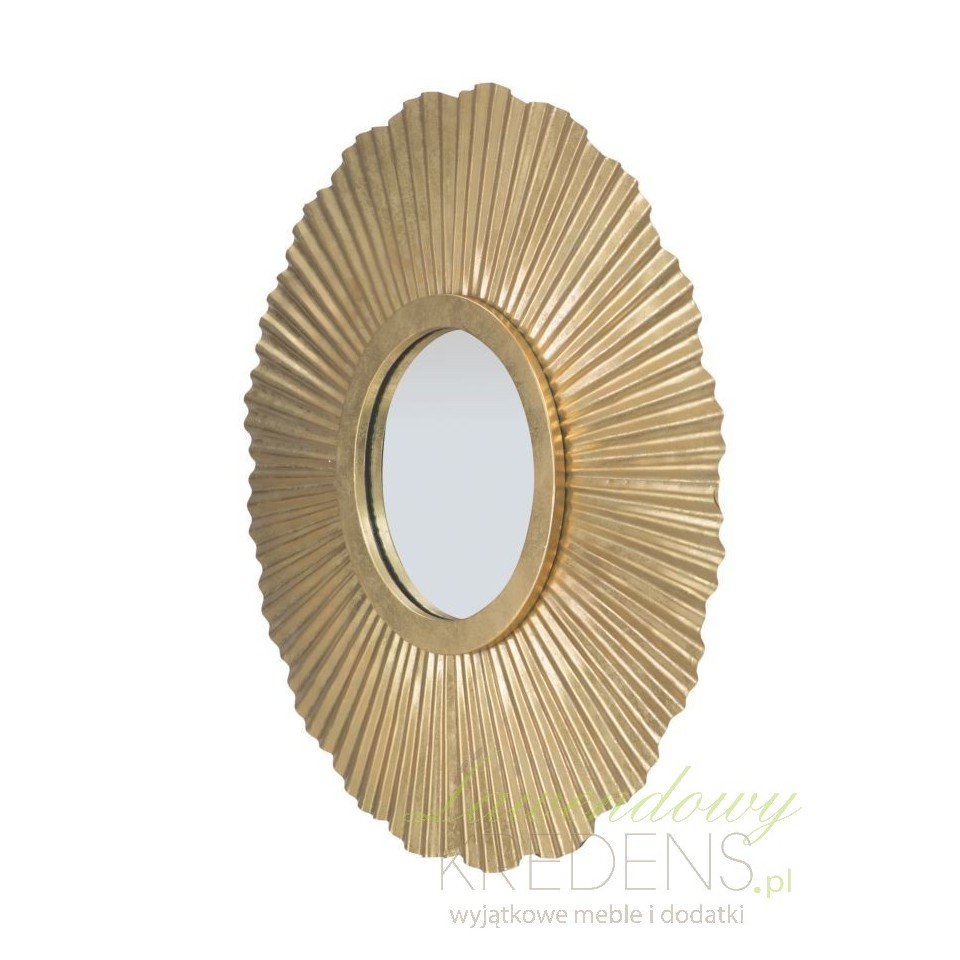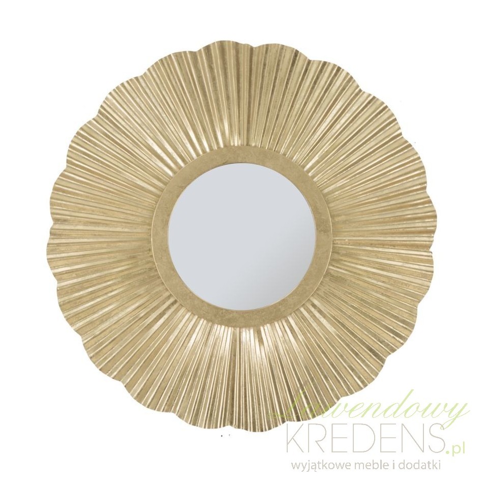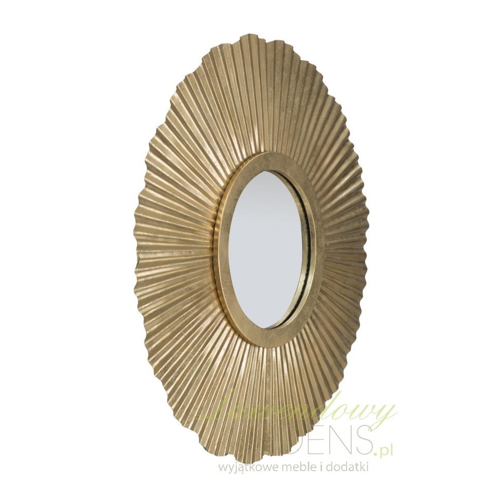Złote lustro w okrągłej ramie zostało wykonane zgodnie z zasadą "mniej znaczy więcej" dlatego tak dobrze wygląda w każdej, nawet bardzo zróżnicowanej aranżacyjnie przestrzeni.
