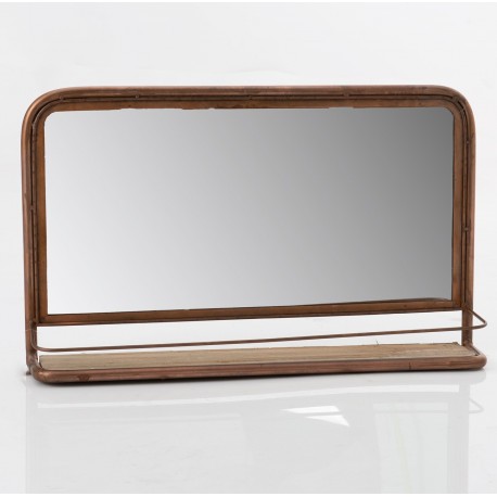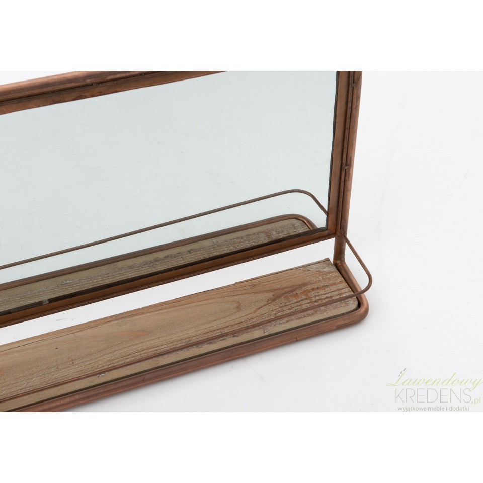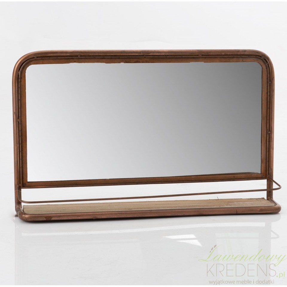 Dodaj nieformalny element wyposażenia wnętrza do wystroju swojego domu i zamów lustro z półką. Lustro w stylu industrialnym dzięki ramie w wykończeniu koloru miedzianego doskonale pasuje do czarnych mebli. Podłużna półka to odpowiednie miejsce na podręczne gadżety lub ozdoby. Delikatny ukłon w stronę stylu vintage sprawia, że oferowane dodatki do domu w stylu industrialnym wyróżniają się na tle innych.
