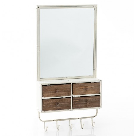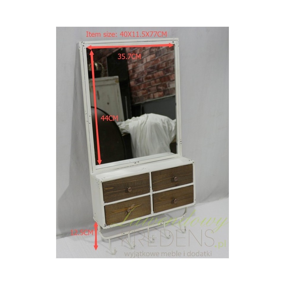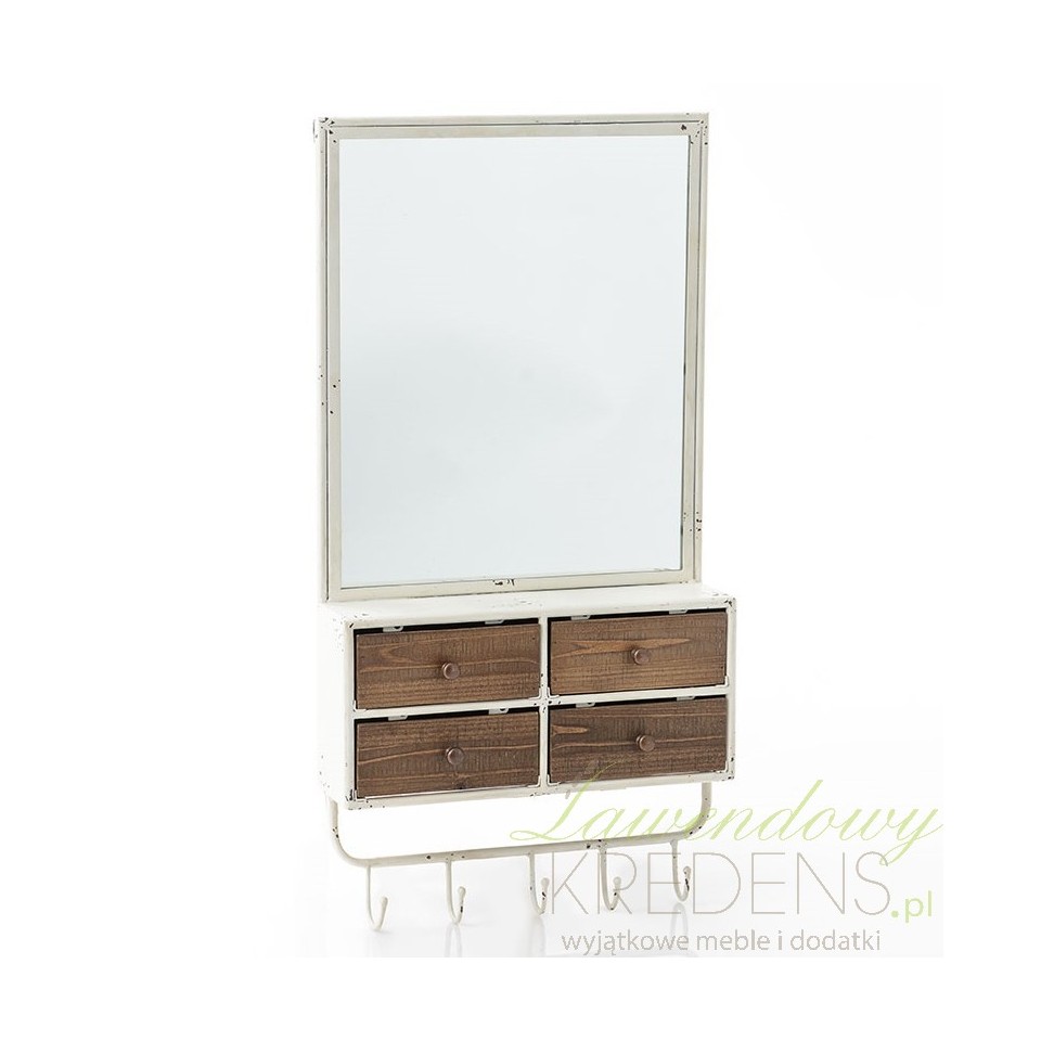 Zwiększ funkcjonalność i styl swojej łazienki, zamawiając lustro loft, będące idealnym połączeniem praktyczności i rustykalnego stylu przejawiającego się w formie celowych postarzeń. Lustro ma białą ramę, która łączy się z czterema szufladkami z frontami w kolorze naturalnego drewna oraz kilkoma uchwytami, doskonałymi na ręczniki. Pojedyncza półka zapewnia miejsce na przybory toaletowe lub akcesoria, dopełniając wygodę tego przyciągającego wzrok lustra. Lustra i inne dodatki w stylu loftowym polecamy do użytkowych wnętrz!