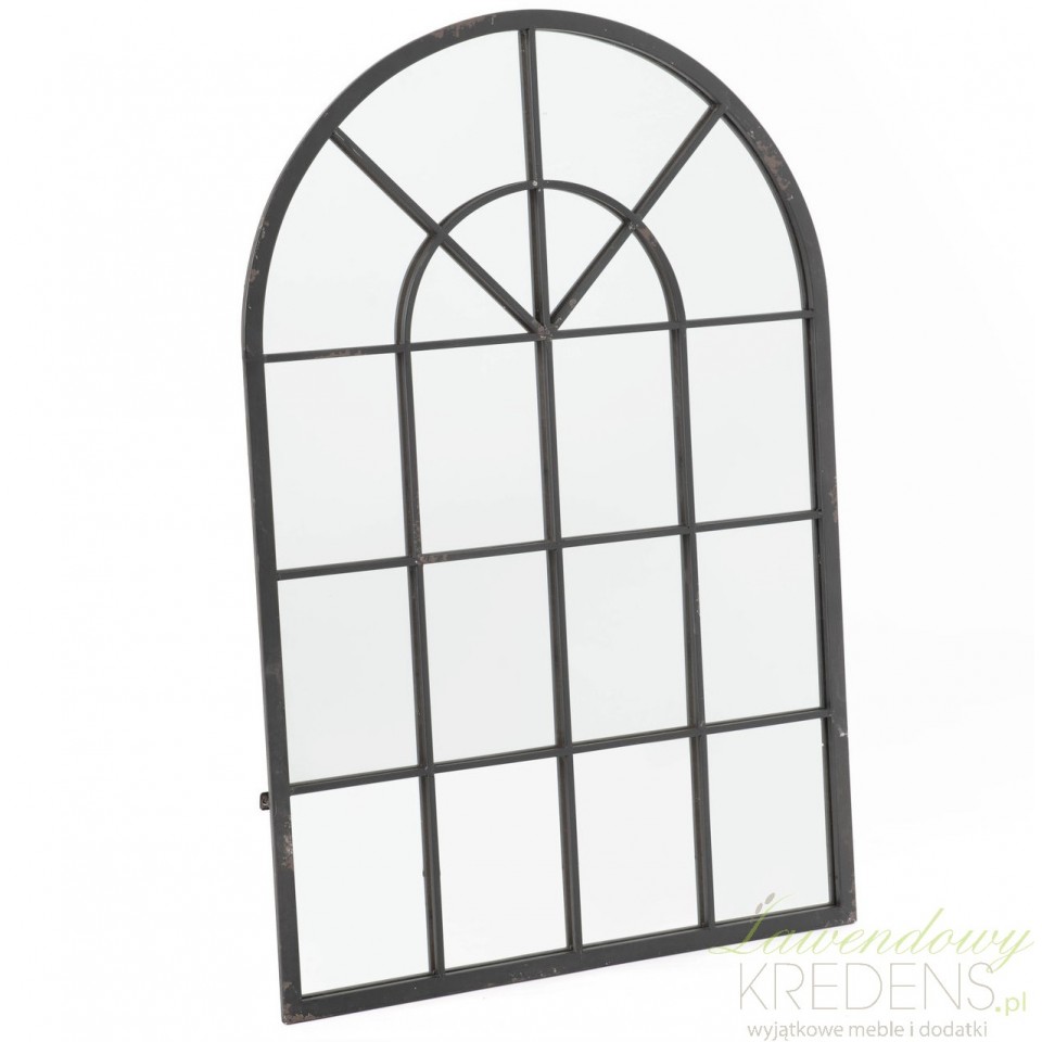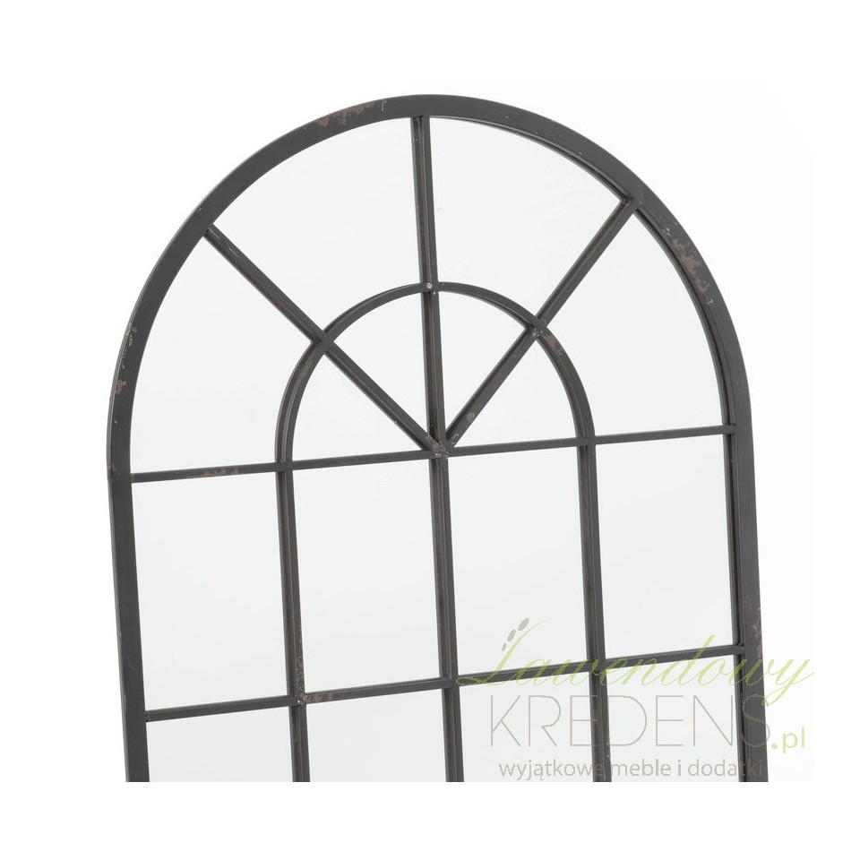 Duże lustro w kształcie okna wykreuje przyjemną wizualnie estetykę dla Twojego salonu, tworząc iluzję prawdziwego okna. Łukowata, górna krawędź w połączeniu z metalową ramą w czarnym wykończeniu dodaje mu dynamiki i klasy. Lustro ze szprosami genialnie odwzorowuje wygląd dużych okien w nowojorskich budynkach. Postarzane wykończenie stanowi wyraźny ukłon w stronę tradycyjnego stylu.