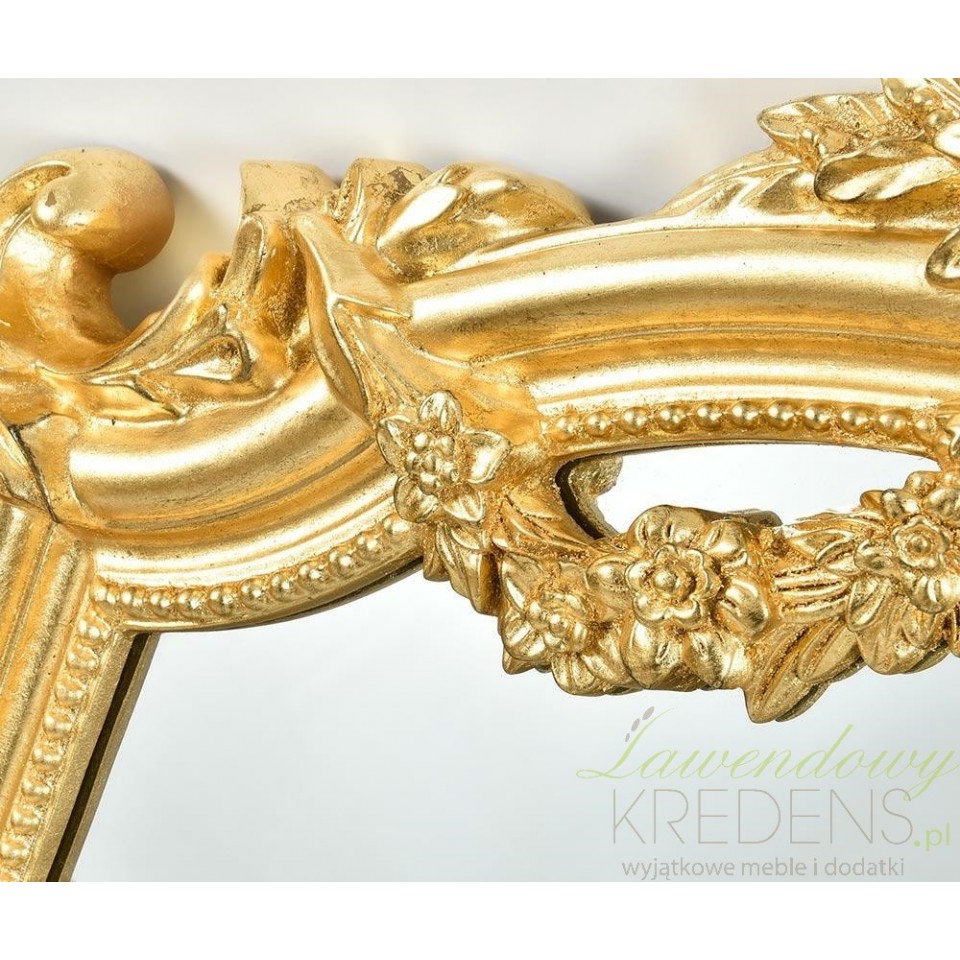 Lustro Belldeco Barok Old uzyskuje swój romantyczny i elegancki wygląd dzięki złotej ramie o nieregularnym kształcie.