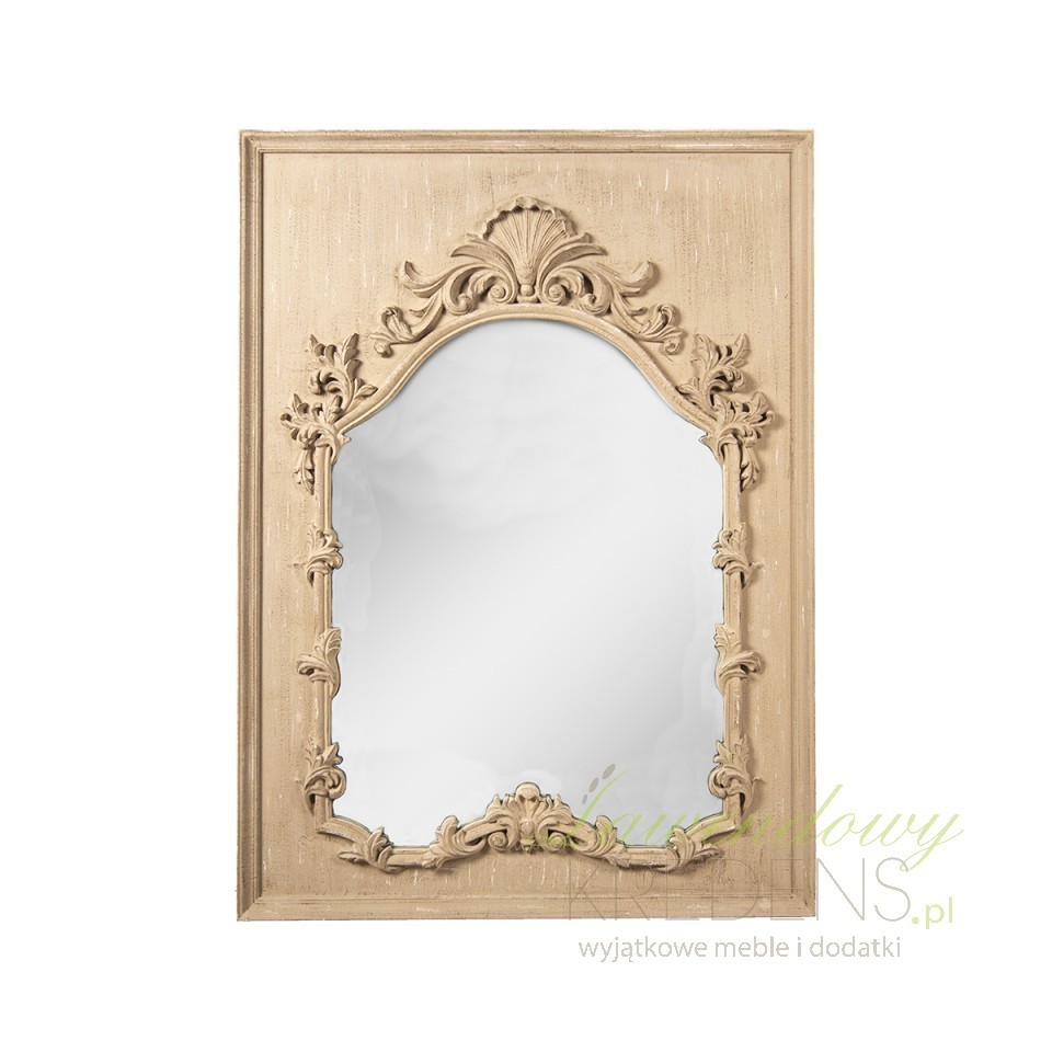 Lustro prowansalskie z rzeźbieniami Clayre & Eef ma odrobinę tajemniczej aury, którą można odczuć, kiedy spróbujemy spojrzeć na siebie w tym pokaźnym zwierciadle.