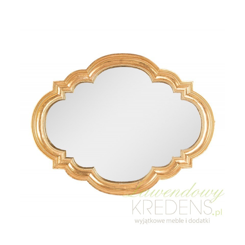 Lustro w złotej ramie Clayre & Eef ma nietypowy kształt ramy w kolorze złotym. Jego blask rozświetli Twoją ścianę.