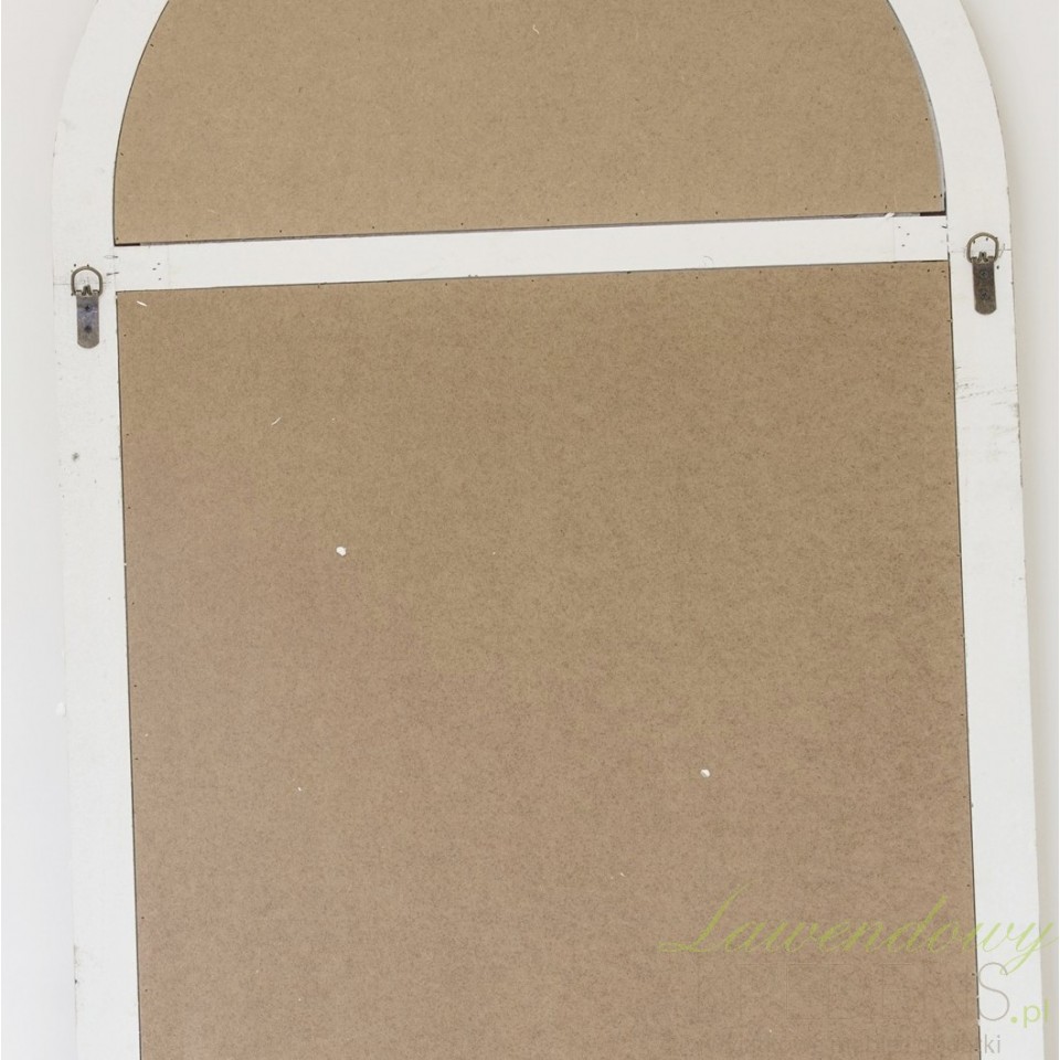 Delikatne, zaokrąglone wykończenie górnej krawędzi sprawia, że lustro w stylu prowansalskim okno nabiera subtelności i elegancji. To szczegół, który podkreśla jego charakter i wyjątkowość, sprawiając, że stanie się ono nie tylko praktycznym elementem, ale również efektowną dekoracją.