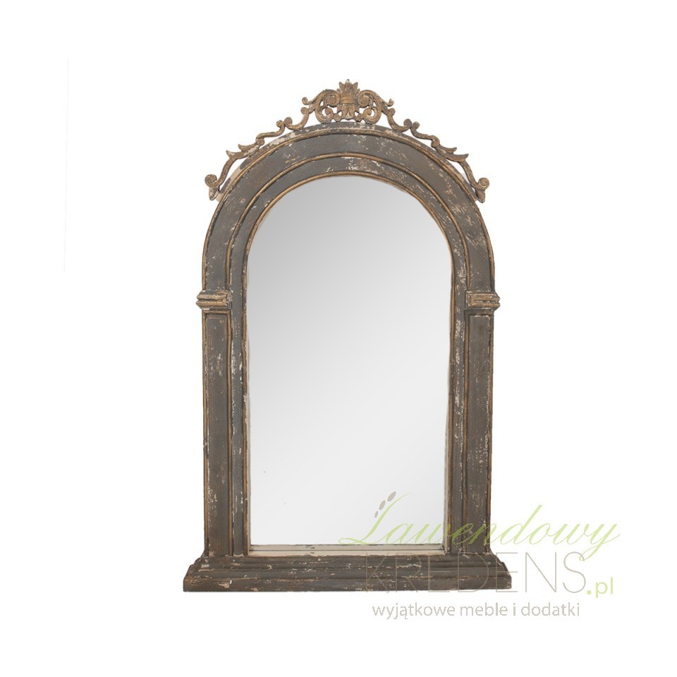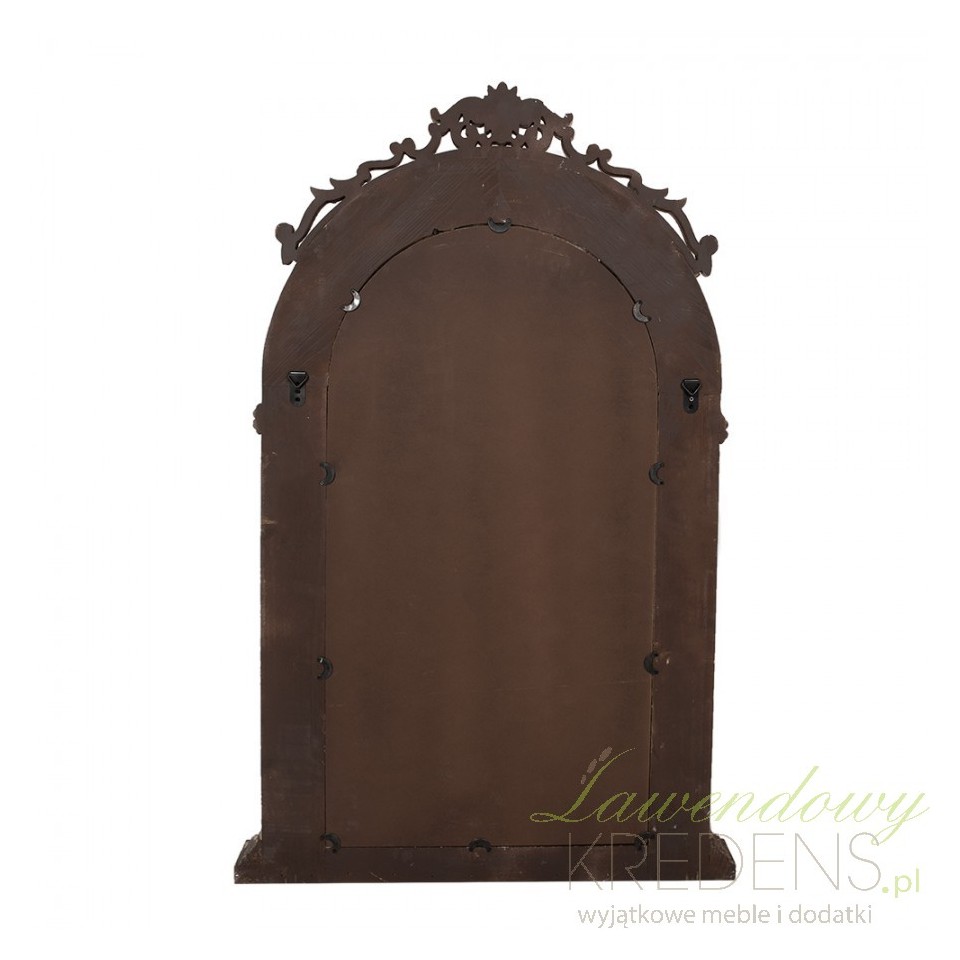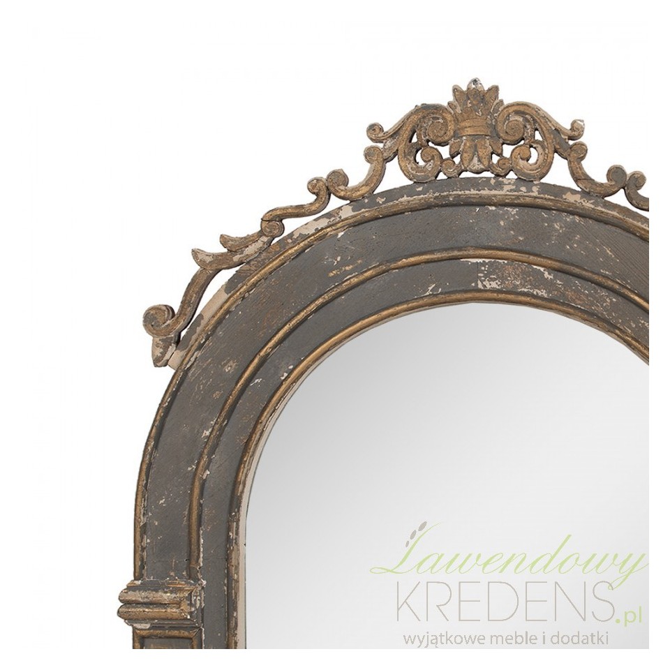 Urok tego lustra jest podkreślony przez delikatny dekor znajdujący się nad górną krawędzią. To misternie rzeźbiona ozdoba, która dodaje jeszcze więcej klasy i wyrafinowania. To właśnie drobiazgi takie jak ten sprawiają, że to lustro wyróżnia się.