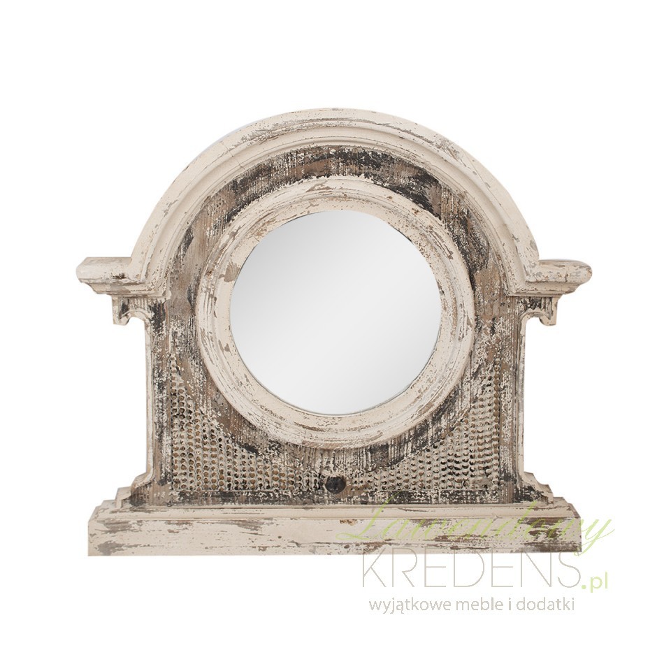 Charakterystycznym punktem tego niezwykłego lustra jest jego drewniana rama, która w niczym nie ustępuje antycznym arcydziełom. Ta kunsztownie wytworzona oprawa lustra, sprawia, że wygląda , jakby przetrwało wiele pokoleń. To nie tylko odbicie – to wrota do przeszłości, przywołanie wspomnień dawnych czasów i sposób na dodanie przestrzeni ducha romantycznego kunsztu.