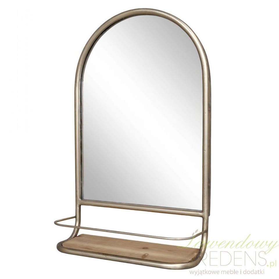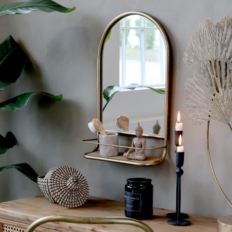 Piękne, łukowate lustro od Chic Antique z praktyczną półką. Miękkie krzywizny i wykończenie w kolorze antycznego mosiądzu nadają lustrze elegancki wyraz.