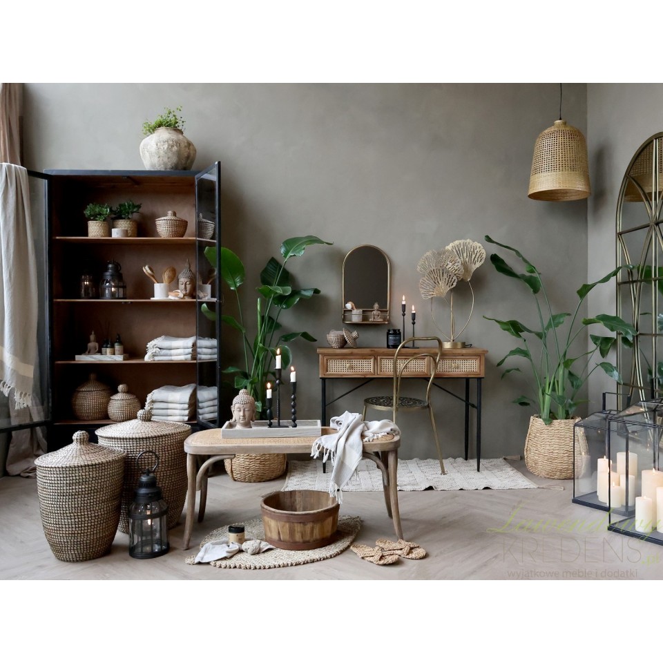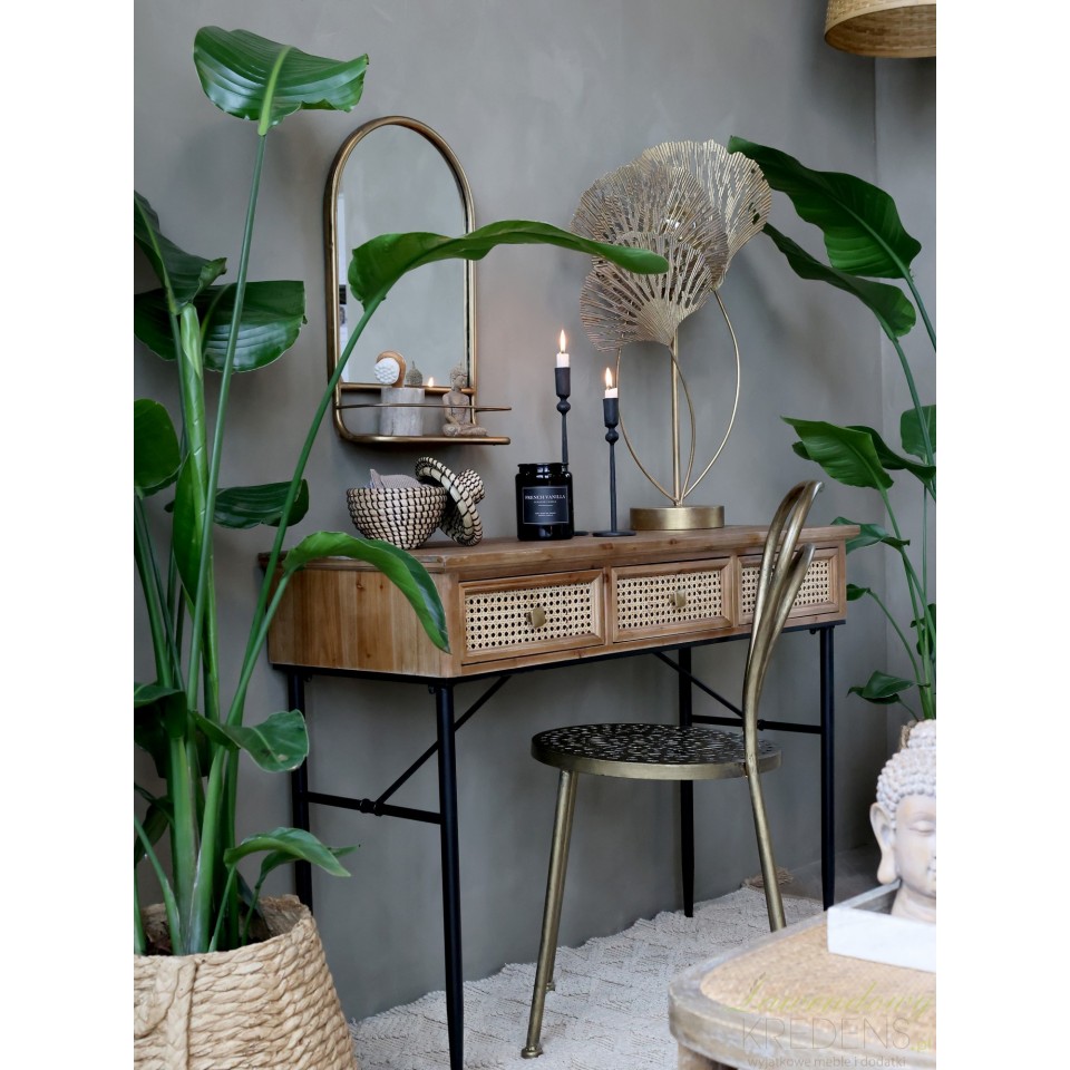 Niewielkie, lecz praktyczne lustro ścienne Chic Antique w stylu skandynawskim, którego półka wykonana jest z drewna jodłowego, a metalowa rama ma modny kolor mosiądzu. Lustro powieś w przedpokoju z małym wazonem i kwiatami na półce, w sypialni z biżuterią na półce lub w łazience, gdzie możesz wykorzystać półkę na kosmetyki lub świecę zapachową. Możliwości jest wiele!