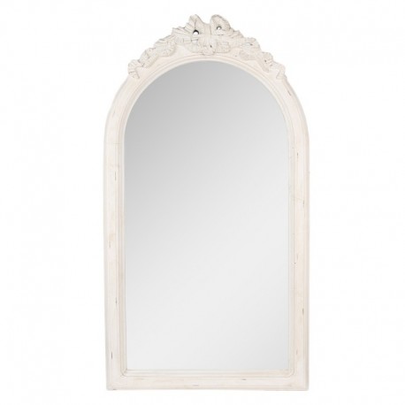 Lustro Clayre & Eef w stylu prowansalskim z jasnobeżową, postarzaną ramą drewnianą. Wymiary 55×72 cm, idealne jako romantyczna dekoracja do salonu, sypialni lub przedpokoju.