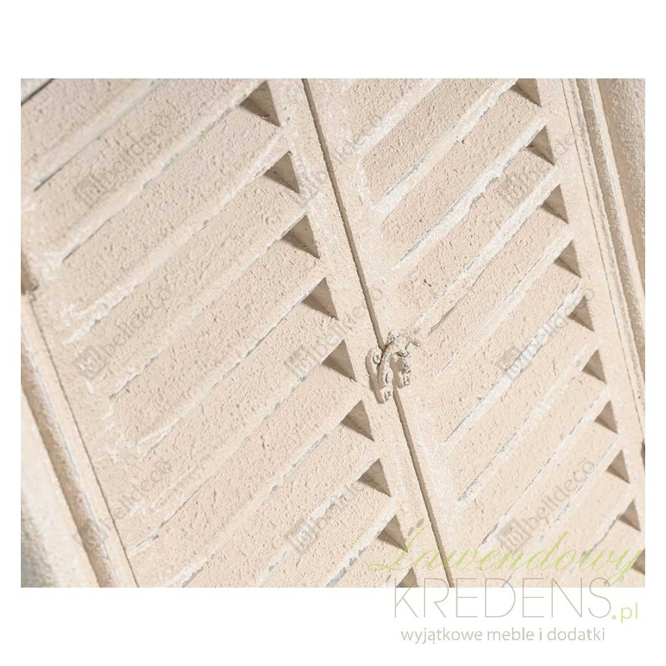 Lustro francuskie Bosco Belldeco to nietypowe lustro z okiennicami, które można zamykać i otwierać. Rama oraz okiennice lustra wykonane są z drewna paulownia o chropowatej fakturze. Są one celowo postarzane poprzez bielenie oraz przetarcia farby.