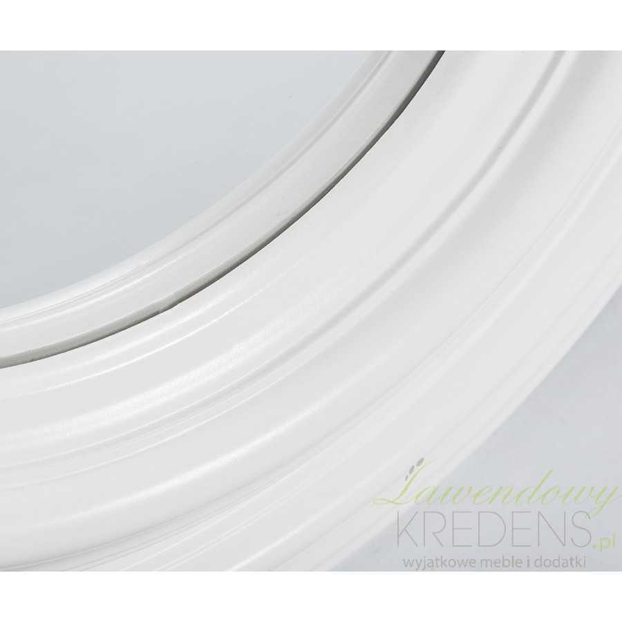 Ozdobne lustra prowansalskie od firmy Belldeco z pięknym, nieskazitelnym, okrągłym zwierciadłem i białą ramą. Szeroka rama dzięki różnej wielkości wgłębieniom i wypukłościom na swojej powierzchni dodaje całości płynności i odrobiny swobody, dzięki czemu lustro Belldeco nie wydaje się ciężkie!