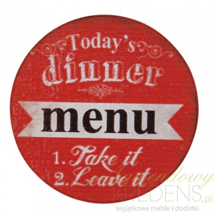 Dodatki do kuchni, a w tym magnesy na lodówkę to świetny pomysł na oryginalne dodatki do wnętrz. Magnes na lodówkę ma okrągły kształt i czerwony kolor. Zdobi go śmieszny angielski napis. To doskonały pomysł na poprawę humoru.