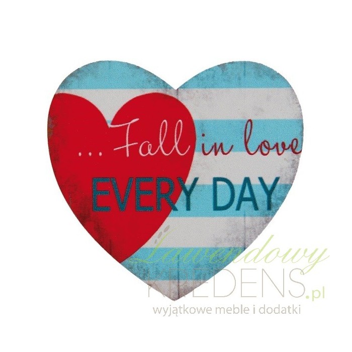 Ten wyjątkowy magnes na lodówkę w stylu retro wykonany został w kształcie serduszka na którym widoczne są biało- niebieskie paski, angielskie napisy oraz drugie czerwone serduszko. Magnesy na lodówkę o interesującym kształcie, rozkochają w sobie każdego.