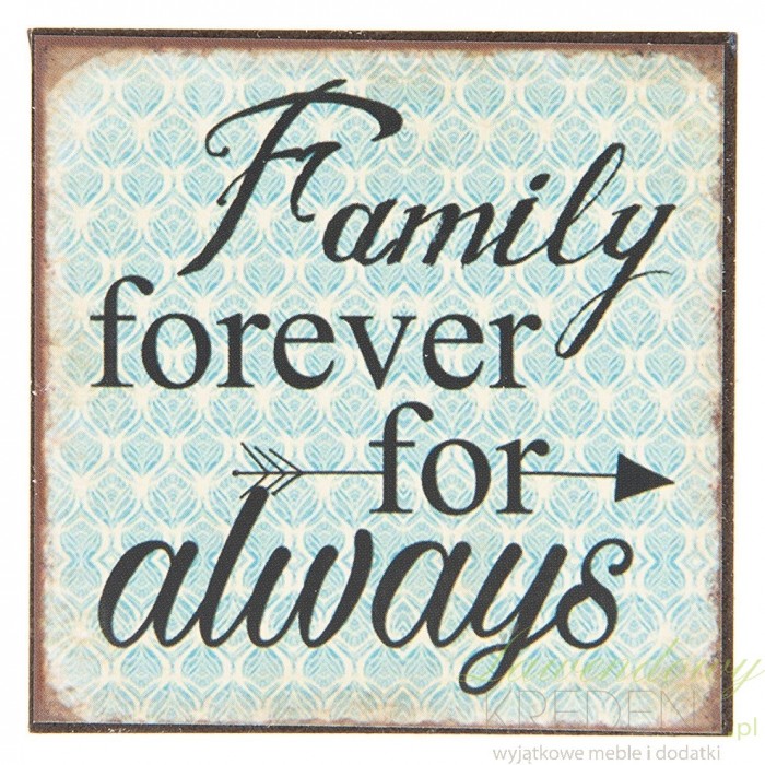 Metalowy magnes na lodówkę z efektownym nadrukiem to jedna z najciekawszych dekoracji kuchennych, która w ostatnim czasie stała się niezwykle popularna. Jest lekki i trwały, łatwo go przymocować do lodówki bądź do metalowego mebla. Nie musisz wiercić dziur w ścianie ani wbijać gwoździ – wystarczy przyłożyć magnes w stylu retro, do metalowej powierzchni. Zamów magnes z grafiką i napisem "Family forever for always".