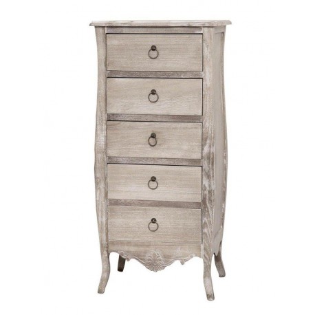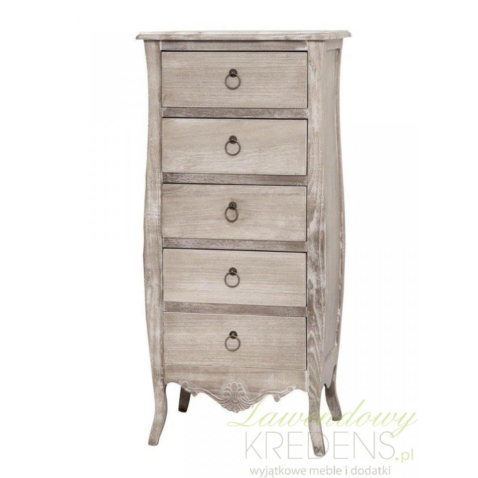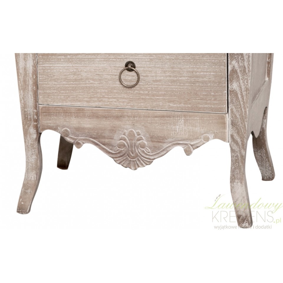 Komoda prowansalska o bielonej powierzchni wykonanej z drewna topoli.