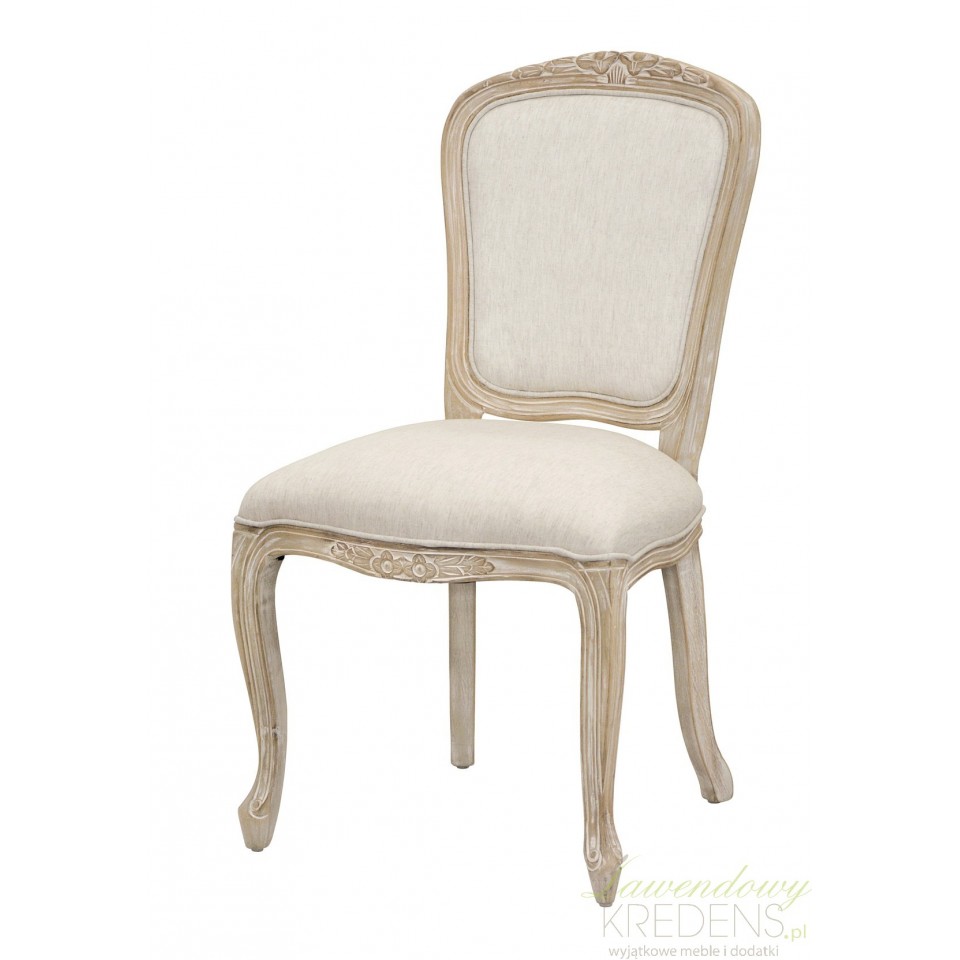 Na oparciu i pod siedziskiem drewnianego krzesła znajduje się stylowy wzór z motywem kwiatów. Taki detal daje piękny akcent ponadczasowej elegancji. Ogólnie rzecz biorąc, krzesło prowansalskie Venezia Bianco Livin Hill będzie pasowało do wszystkich stylów mebli w jasnej tonacji. Beżowa tapicerka pokrywająca siedzisko i oparcie, jest gładka i miła w dotyku. Takie meble Livin Hill to spełnienie marzeń o przytulnych czterech kątach.