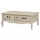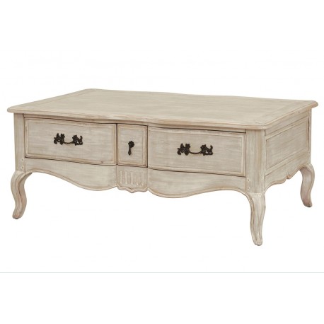Oto stolik kawowy prowansalski Venezia Bianco - ten zachwycający mebel cechuje postarzane wykończenie. Klasyczny wygląd wzbogacają lekko wygięte nóżki i metalowe, zdobione uchwyty. Drewniany stolik w kolorze brązowo-beżowym posiada ponadto dwie szuflady, zapewniające dodatkowe miejsce do przechowywania. Zastanawiasz się jak będzie wyglądał Twój salon gdy pojawią się w nim meble Livin Hill? Zamów już teraz niezbędne elementy wyposażenia domu od polskiej marki i przekonaj się na własne oczy!