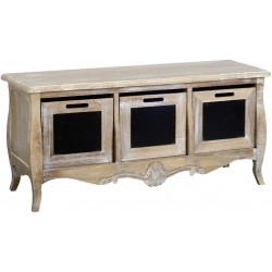 Komoda prowansalska z trzema szufladami. Komoda jest bielona i wykonana z drewna topoli. Ścianki boczne oraz szuflady komody wykonane są z MDF. Komoda świetnie sprawdzi się zarówno w salonie jak i w sypialni w roli komody na bieliznę i ubrania.