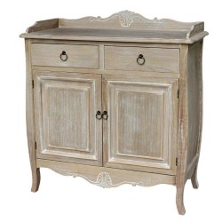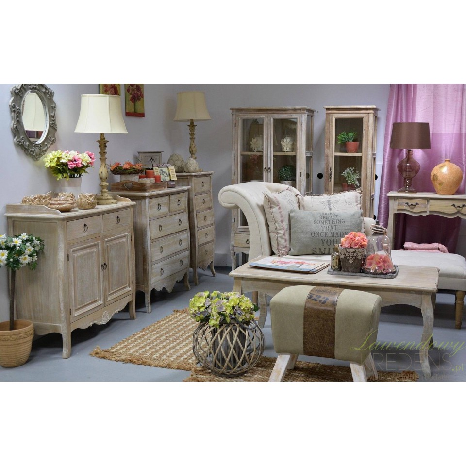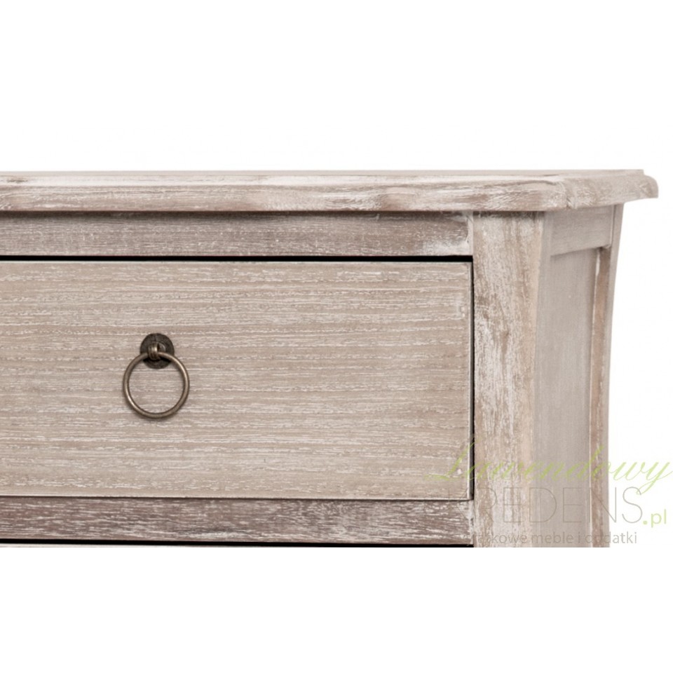 Komoda prowansalska o bielonej powierzchni wykonanej z drewna topoli.