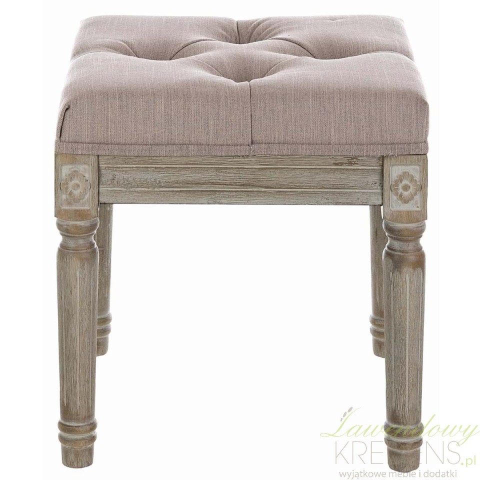 Ten kwadratowy stołek o wymiarach 40 x 40 x 42 cm to idealna propozycja dla miłośników stylu prowansalskiego i ludwikowskiego. Jego solidne nogi z drewna kauczukowego zostały poddane bieleniu i delikatnie rzeźbione, zachowując jednocześnie prostą, nienachalną formę. Nadaje to meblowi lekkości i pozwala na swobodne wkomponowanie go zarówno w klasyczne, jak i nowoczesne wnętrza inspirowane estetyką południowej Francji.
