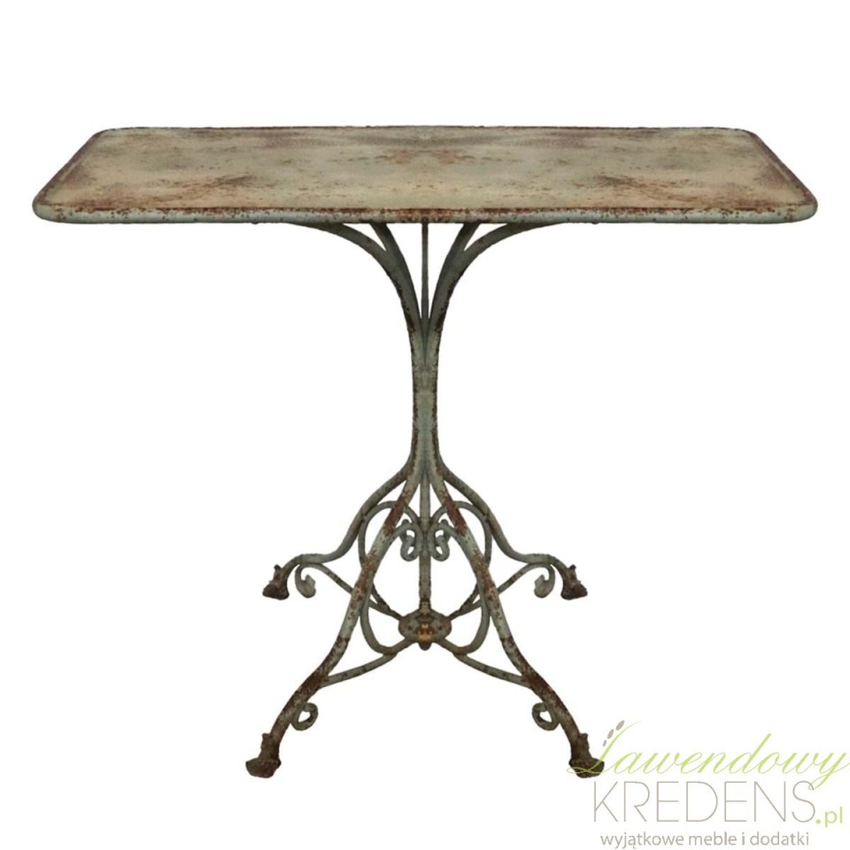Jego eleganckie, gięte nogi nadają mu subtelnej lekkości, a jednocześnie zapewniają stabilność i wytrzymałość. Metalowa konstrukcja została celowo postarzana, co nadaje stołowi autentycznego, vintage’owego charakteru i sprawia, że wygląda jak mebel z duszą i historią. Dzięki temu doskonale komponuje się zarówno z klasycznymi wnętrzami inspirowanymi francuską Prowansją, jak i nowoczesnymi aranżacjami, w których pełni funkcję efektownego kontrapunktu stylistycznego.