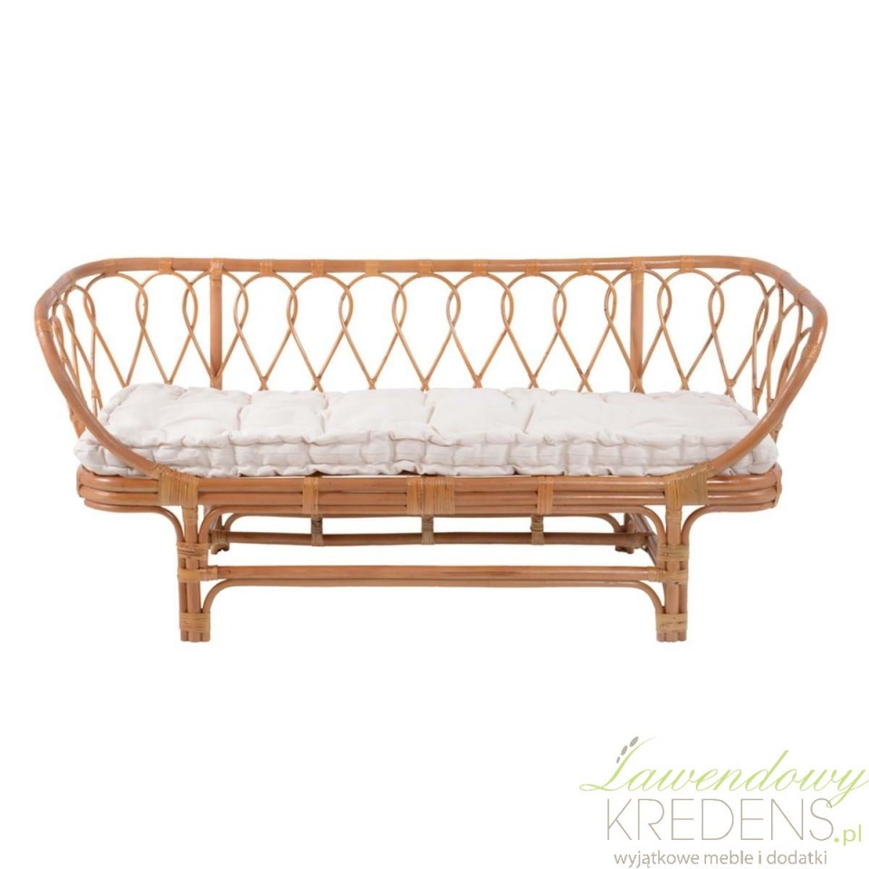 Zaokrąglone oparcie ławki jest jednym z jej głównych atutów – dodaje jej delikatnego, ale jednocześnie eleganckiego wyglądu. Kolor rattanu w ciepłych odcieniach brązu, subtelnie współgra z jasnym siedziskiem, które jest nie tylko wygodne, ale także miękkie i przyjemne w dotyku dzięki wypełnieniu poduchy.