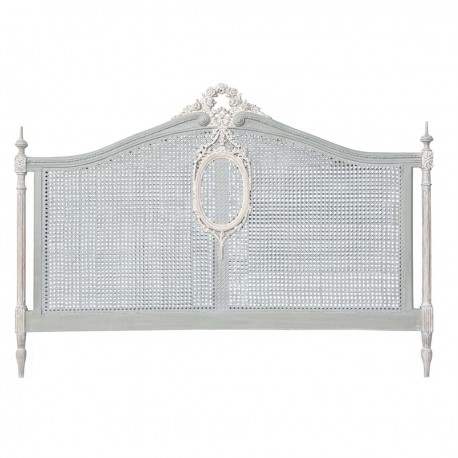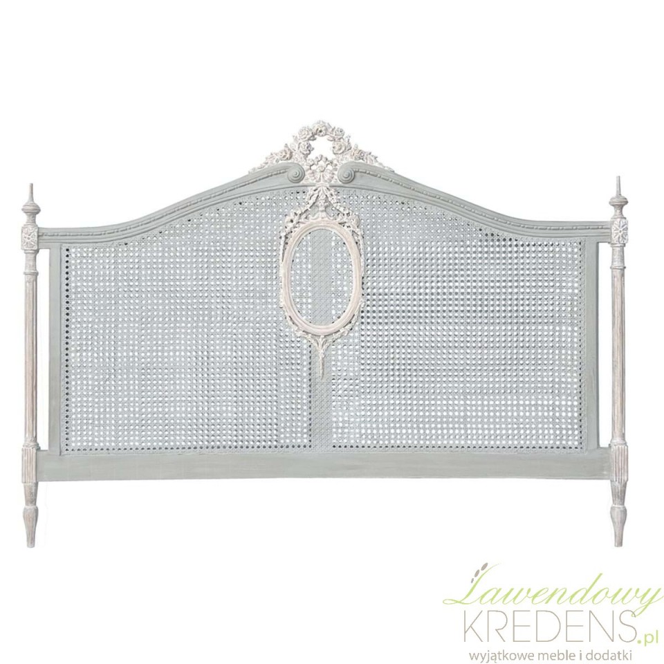 Centralny element zagłówka stanowi subtelna, owalna rama ozdobna z motywem florystycznym, która nadaje całości wyjątkowego, niemal pałacowego charakteru. Przestrzeń wypełnia ręcznie wyplatany rattan w delikatnym odcieniu szarości – przewiewny, elegancki i przyjemny w odbiorze wizualnym. Taka konstrukcja sprawia, że zagłówek nie tylko pełni funkcję dekoracyjną, ale również wprowadza do sypialni lekkość i naturalny rytm.