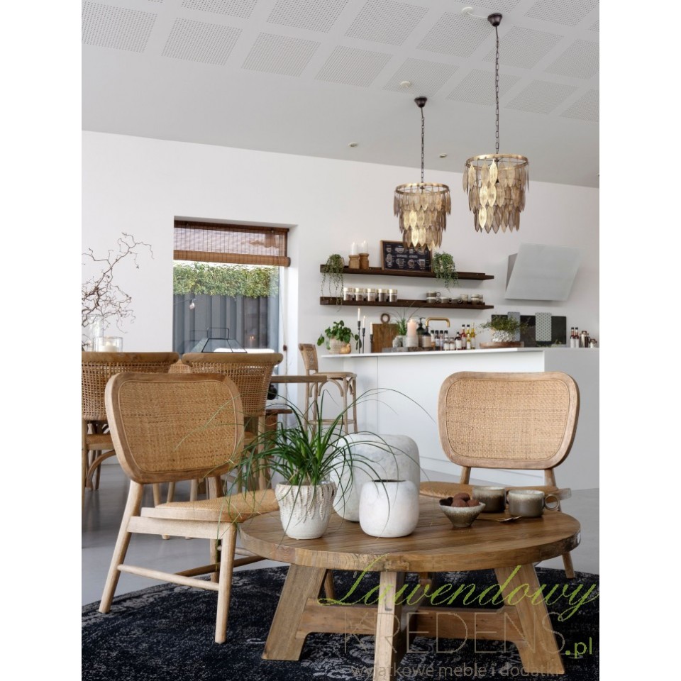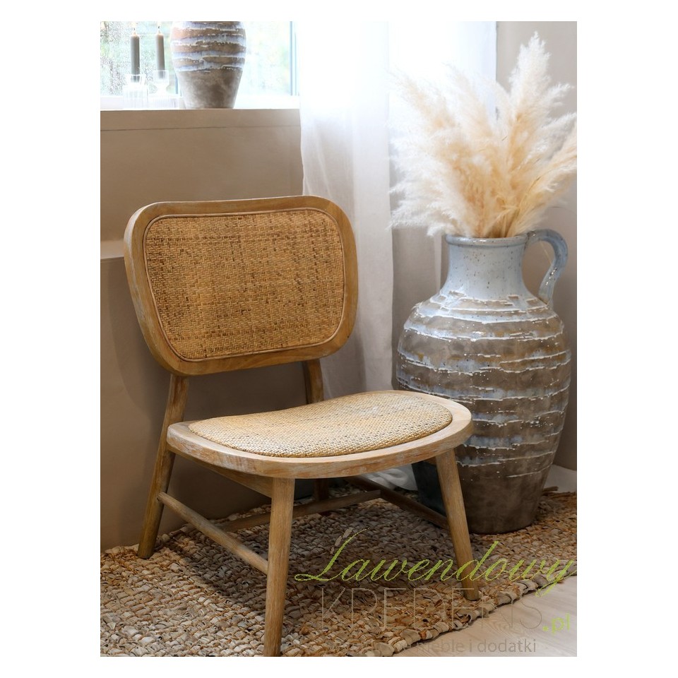 Dzięki szerokiemu siedzisku i ergonomicznej formie, fotel ten sprawdzi się nie tylko jako miejsce relaksu przy książce czy filiżance kawy, ale też jako uzupełnienie strefy wypoczynkowej w salonie lub przedpokoju. Może również pełnić funkcję eleganckiego krzesła do biurka lub stołu w jadalni, szczególnie w zestawieniu z innymi meblami z naturalnego drewna i plecionek.