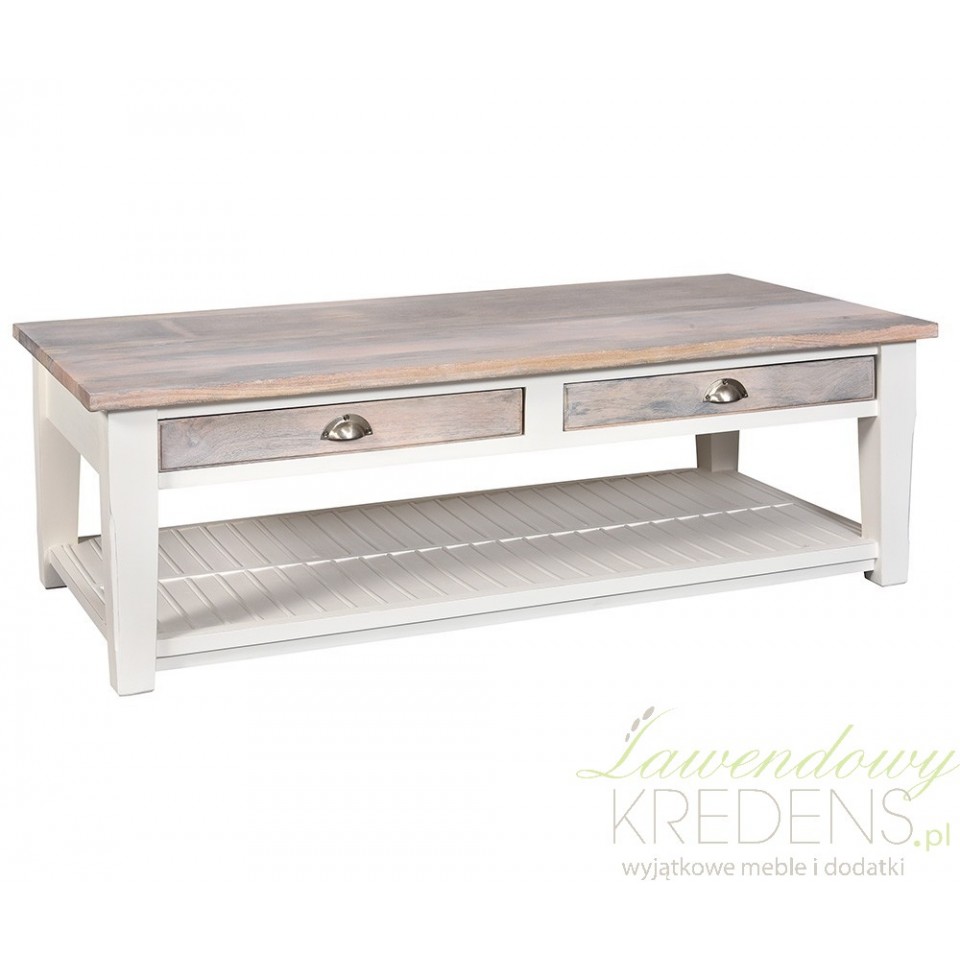 Stół kawowy będący połączeniem nie tylko dwóch gatunkow drewna, ale także dwóch kolorów! Stolik kawowy Belldeco Bristol White łączy funkcjonalność z elegancją. Blat z drewna mango i korpus z akacji w kolorze antycznej bieli podkreślają jego unikalny, prowansalski charakter. Idealny do wnętrz w stylu Hamptons, angielskim i skandynawskim.