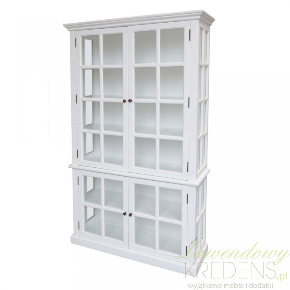 Biała witryna Chic Antique charakteryzuje się prostymi liniami i funkcjonalnością; posiada pięć półek a jej przeszklone drzwi ozdobione są białymi szprosami. Jej biała kolorystyka nadaje pomieszczeniu jasności i przestrzeni, jednocześnie harmonijnie łącząc się z naturalnymi elementami skandynawskiego stylu. Przeszklone drzwi z subtelnymi szprosami dodają delikatnego akcentu i umożliwiają wyeksponowanie ulubionych przedmiotów, pamiątek, kolekcji czy pięknej zastawy stołowej.