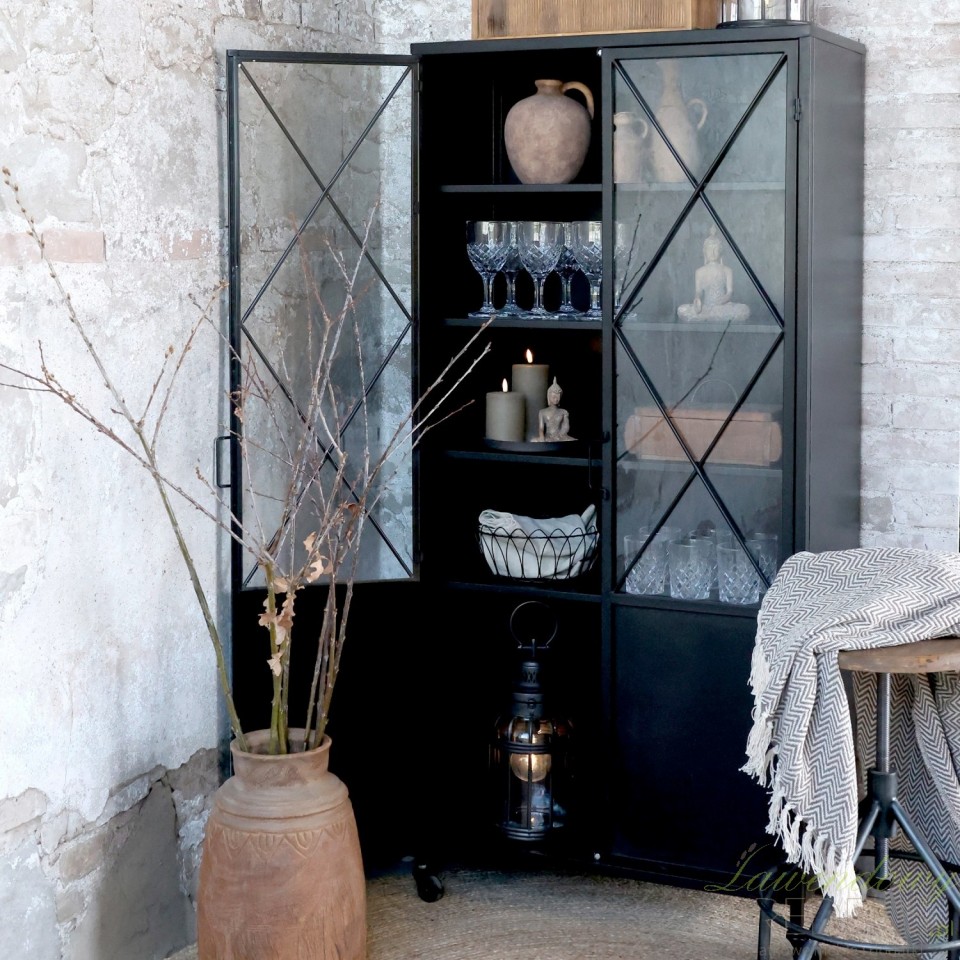 W krainie meblarskich innowacji powstało niezwykłe dzieło: wysoka witryna w stylu industrialnym Chic Antique. To połączenie surowego industrialnego stylu z elegancją i funkcjonalnością. Jej czarny korpus i unikalny układ drzwi tworzą niepowtarzalny charakter, który od razu przyciąga wzrok.